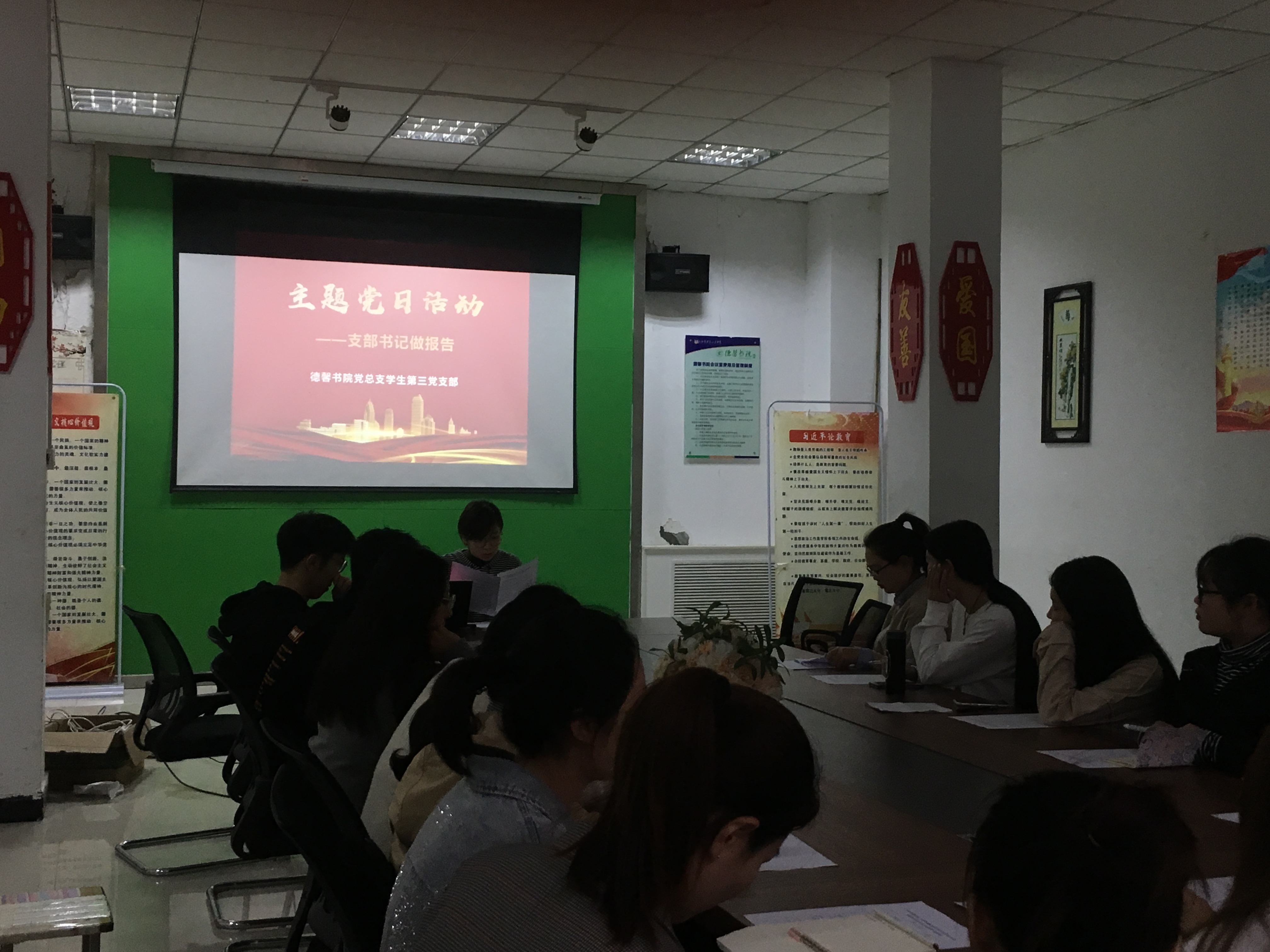 10月15日,德馨书院第三党支部在德馨书院党务活动室开展了主题党日活动——支部书记作报告,会议由党支部书记张晗主持,并为让“弘扬革命精神、坚定理想信念”做主题报告,第三党支部全体党员、预备党员参加会议。