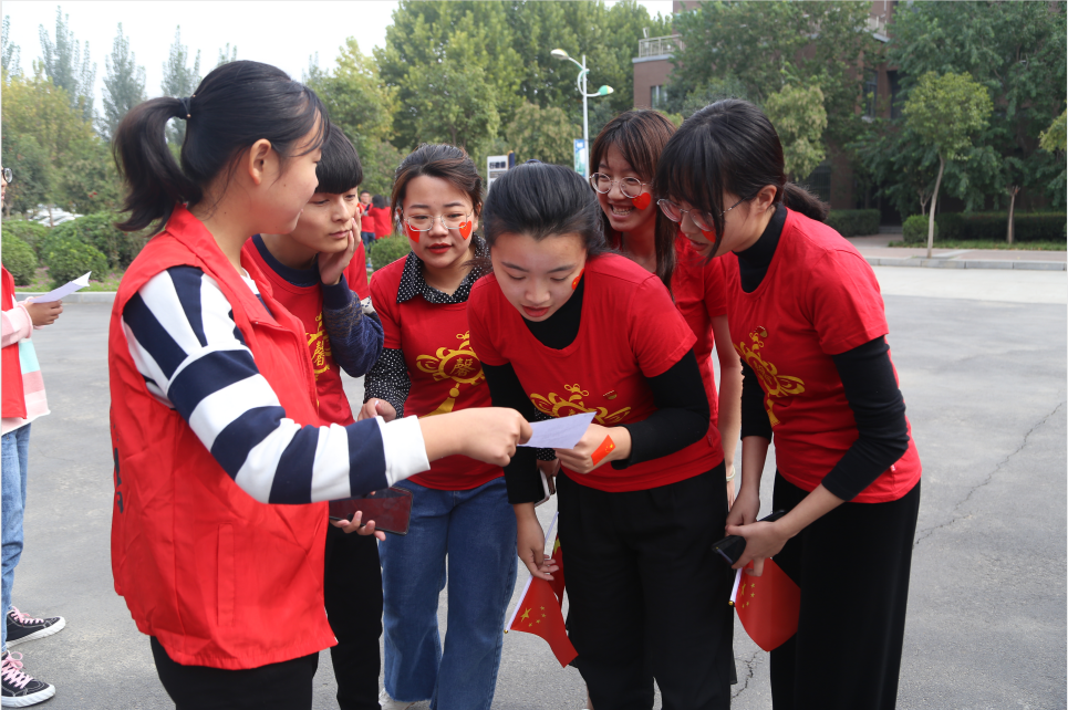 10月17日中午,学生第一党支部全体党员参与了德馨书院党总支特举办“不忘初心、牢记使命”主题教育暨“党旗飘扬展风采,不忘初心温誓词”系列活动。此次活动分为“初心”和“使命”两个环节,党支部的党员着红色服装与德馨书院全体教师党员和学生党员全体拼出了鲜艳的中国共产党党旗形状,怀着满腔爱国热情,一幅鲜红而有意义的党旗映入大家的眼帘,全体党员以党旗为背景对党深情“告白”。接下来,党支部书记手持党旗带领支部成员进行奔跑、竞赛打卡,途经德馨书院党员活动室不忘初心,牢记使命主题起始处、行政楼不忘初心,牢记使命标识物、大医精诚石碑不忘初心,牢记使命标识物、礼堂中国梦摆设点等打卡点,最后到达新时代学习展馆。