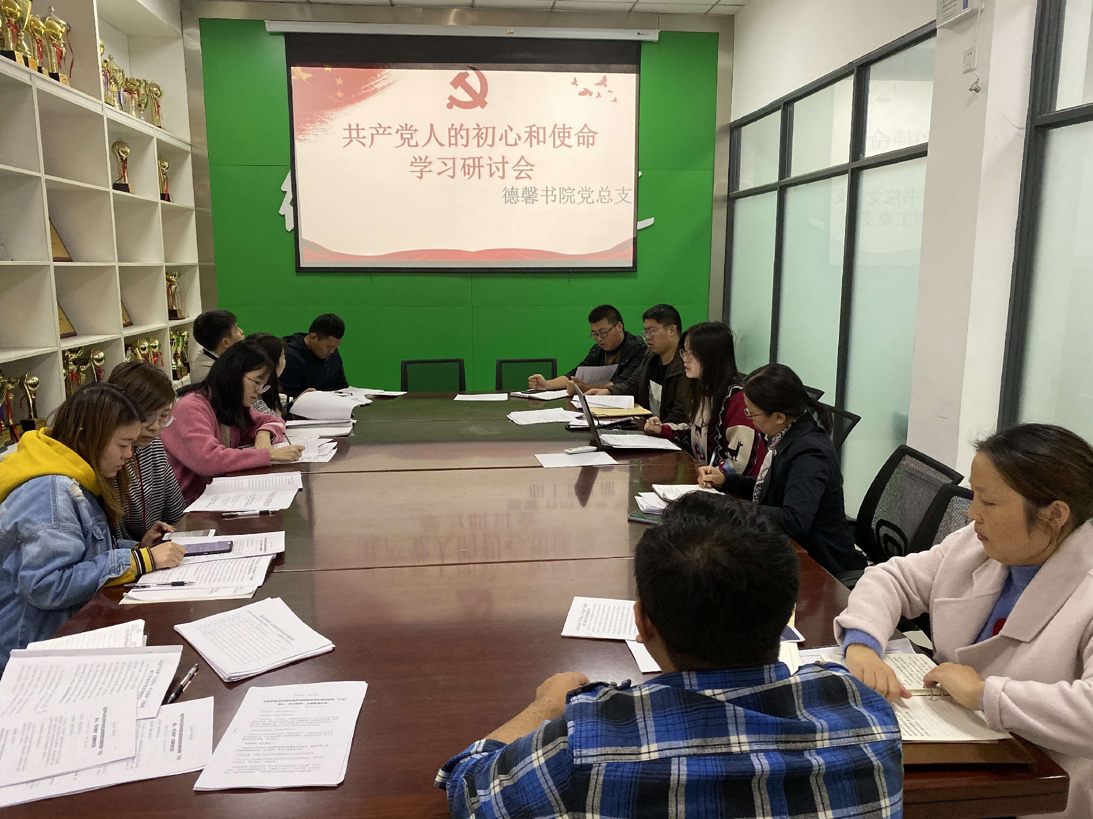 为了深入学习贯彻习近平总书记在中央“不忘初心、牢记使命”主题教育工作会议上的重要讲话精神,按照学院《关于开展“不忘初心、牢记使命”主题教育实施方案》的工作要求,结合德馨书院主题教育工作安排部署,10月25日,德馨书院党总支于书院会议室召开了“共产党人的初心与使命——为中华人民谋幸福,为中华民族谋复兴”专题学习研讨会,德馨书院党总支书记金靖芝主持会议。