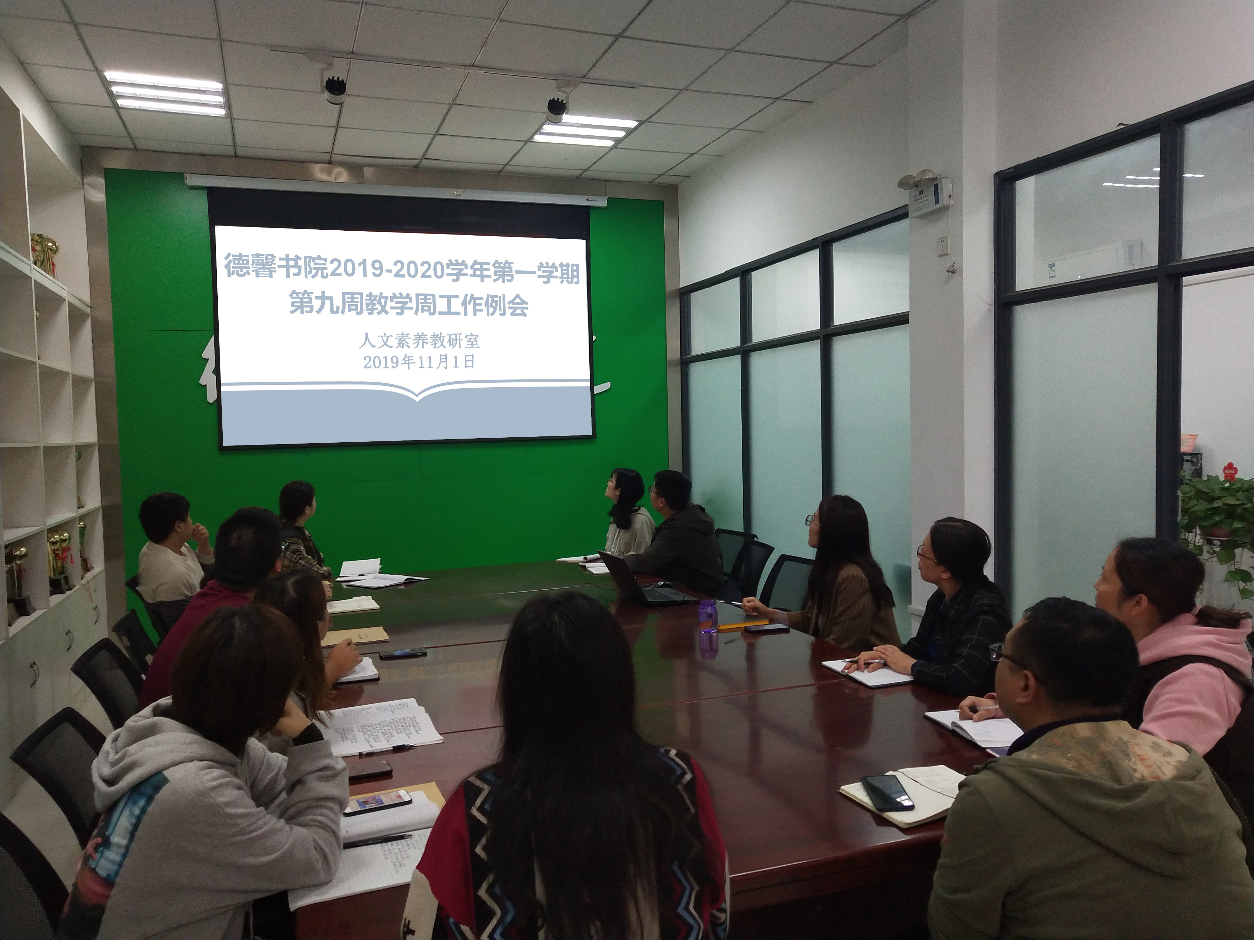 2019年11月1日下午,德馨书院全体教师在德馨书院办公室召开第九周教学工作例会。