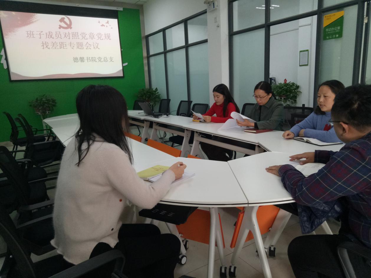 根据中央、省委主题教育领导小组的部署要求和学院对照党章党规找差距工作安排,11月15日,德馨书院党总支领导班子召开对照党章党规找差距专题会议,重点对照党章、《关于新形势下党内政治生活的若干准则》和《中国共产党纪律处分条例》,开展检视分析和相互提醒。我院党总支5名支委会成员参加会议。