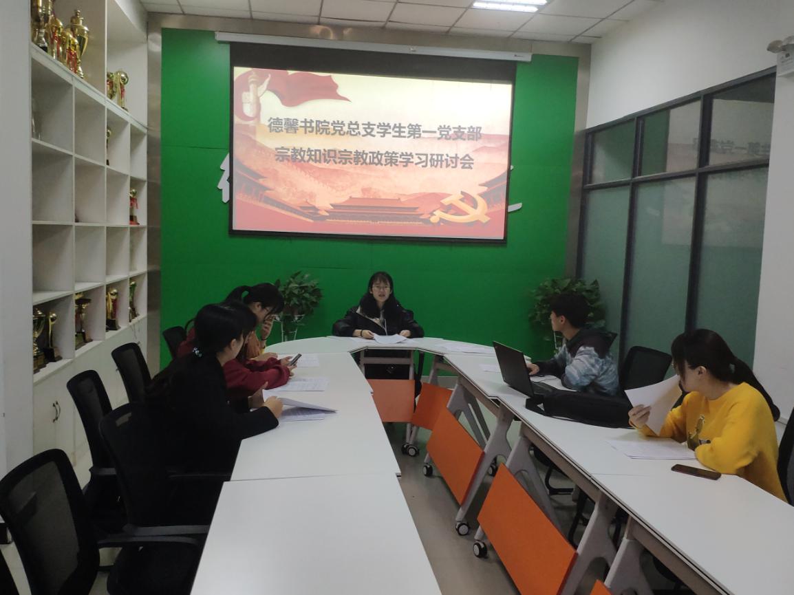 在“不忘初心、牢记使命”主题教育开展的背景下,为进一步加深党员同志对我国宗教政策的理解,促进全体党员树立正确的宗教观和学法遵法守法用法意识,提高学生认识和对待宗教问题的能力。德馨书院党总支学生第一党支部于11月20日开展“宗教知识宗教政策”学习研讨会。此次会议由德馨书院党总支学生第一党支部书记李丹萌主持,德馨书院第一支部全体党员参加。