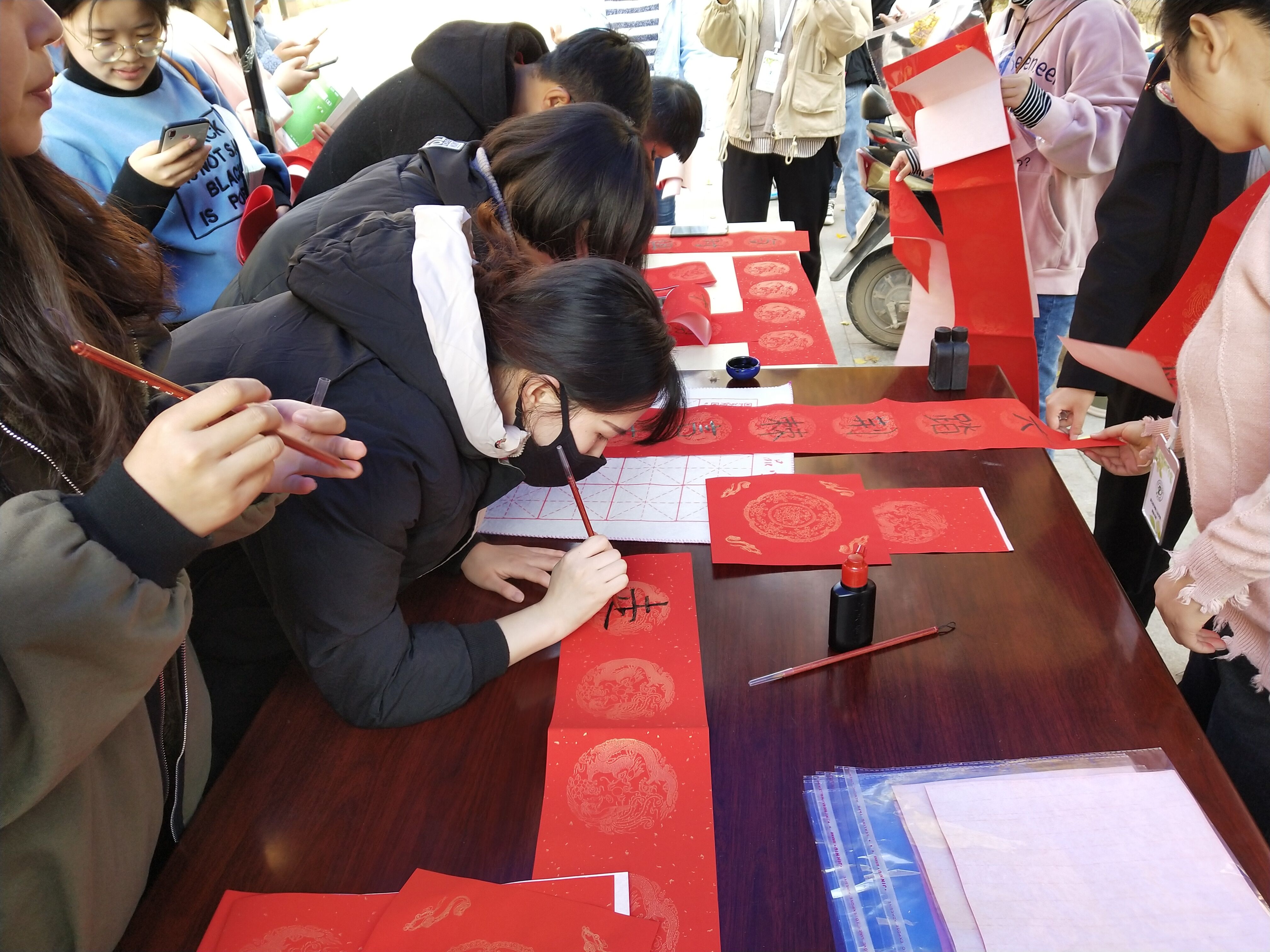 上午12点,在德馨书院前展开此次实践课。课程分为四个环节:“文化之心——多彩社区”、“环保之心——换绿植”,“友谊之心——踩瓶子”和“运动之心——撕名牌”。在“文化之心——多彩区”的服务台前,同学们排队领取对联,手握毛笔,落笔如云烟。学生一副副蕴含深意的对联表达着对自己、祖国未来的美好祝福。在此环节中,德馨书院党总支书记金靖芝表示“大学生要牢记文化初心,不忘传承使命,争做传统文化的传递者”。接着在“环保之心——换绿植”的活动中,用六个废瓶和一个纸箱换取一盆绿植,并由志愿者们对废旧物品进行回收利用。活动开始后,同学们拿出寝室里的废旧纸箱和瓶子在服务台前有序地排队,换取绿植。彰显学生绿色环保、垃圾分类、循环利用的优良品质。