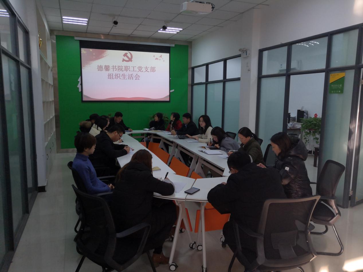 首先,德馨书院党总支书记金靖芝带领支部党员们集中学习贯彻习近平总书记在《“不忘初心 牢记使命”主题教育上的讲话》的内容,并进行了深入细致的介绍和阐释。全体人员共同学习并记录了会议的主要内容和精神。随后,德馨书院职工党支部书记侯永爽向同志们汇报了2019年度的工作报告,在会党员对支部领导班子的工作开展了评价,好的习惯继续保持,不良的做法努力改正。接下来,德馨书院职工党支部书记侯永爽老师带头联系思想工作实际从守初心、遵守纪律、履行职责、落实组织生活等方面开展了批评与自我批评。接着,轮到组织委员、宣传委员,再到党员每一名同志都进行了深刻的批评与自我批评,大家都态度诚恳,虚心接受他人提出的批评意见,这个会议氛围严肃又活泼。最后,党支部按照个人自评、党员互评、民主测评的程序开展民主评议党员工作。全体党员都对照党员标准、对照教育实践活动要求,实事求是地作出自我评价和自我批评。通过党员民主评议,评选出支部本年度的优秀党员4名、合格党员8名,本支部没有不合格党员。大会结束前金靖芝书记再次强调党支部的每个成员都得尽到自己职责,认真负责的对待每一件事情,并努力完善自己,改正自己的缺点,争取做一名优秀的共产党员。