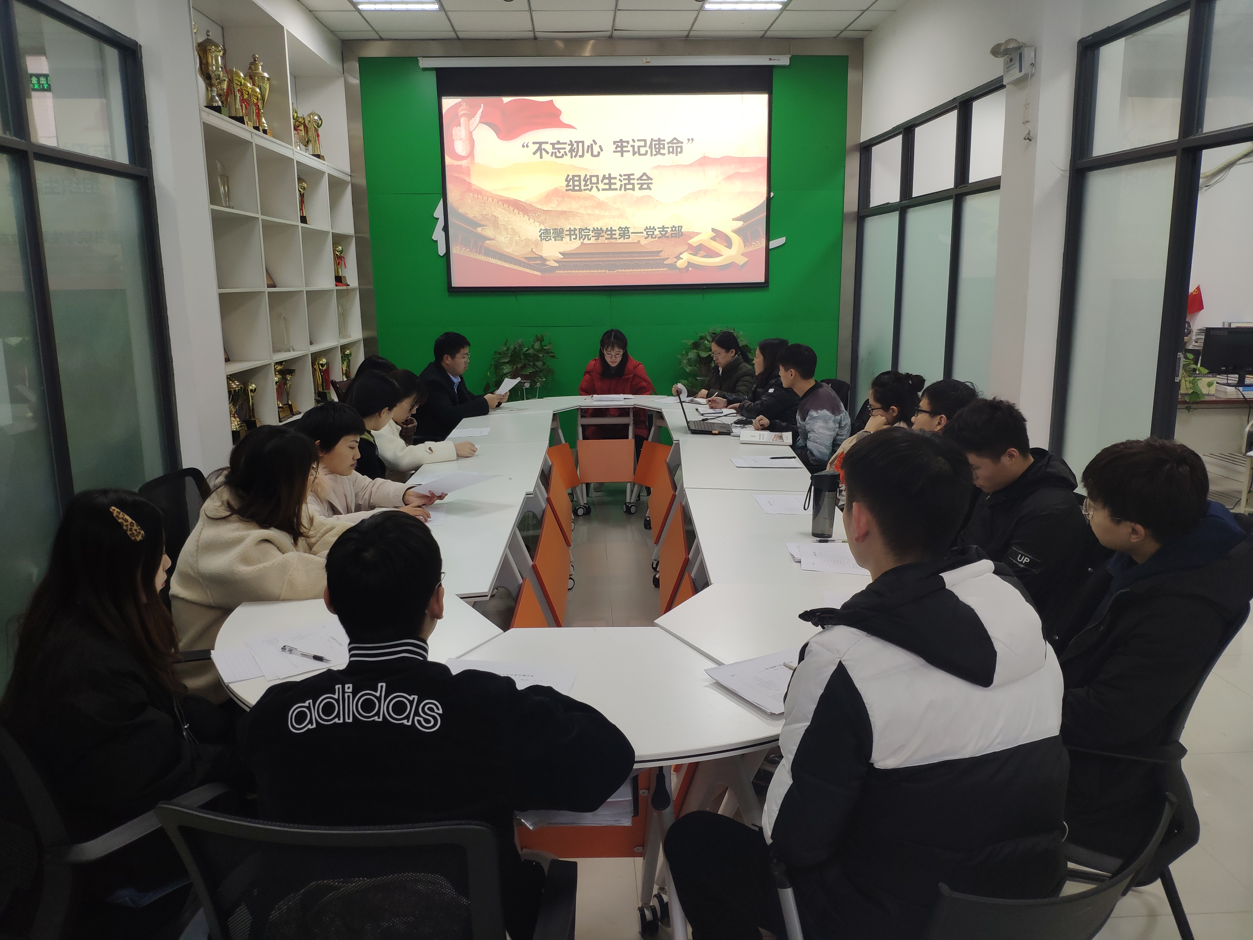 12月6日,德馨书院学生第一党支部召开“不忘初心,牢记使命”专题组织生活会,德馨书院党总支书记金靖芝,德馨书院党总支副书记平丹丹、学生第一支部书记李丹萌、组织委员吴英杰以及全体党员参加此次会议,会议由支部书记李丹萌主持。