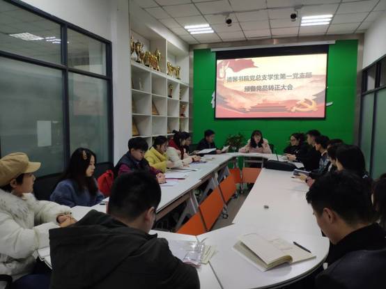 会议开始,德馨书院学生第一党支部书记李丹萌首先简短的介绍了预备党员转正程序,介绍了三名预备党员自2018年12月为预备党员,现在预备期已满一年,支部书记李丹萌介绍了三名同志的一年来的预备党员思想、学习及工作情况。随后李书记带头发表了对于三名预备党员转正的看法,三名预备党员的入党动机端正,一直以来团结同事、尊重领导、严于律己、为人热情大方、作风正派、积极进取、富有创新精神、具有较高的业务水准,并认为,他们已经具备了党员的条件,同意他们入党表示希望他们在今后的工作和生活上能时刻以一名共产党员的要求来要求自己并同意他们发展为正式党员。