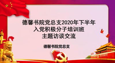 为加强对入党积极分子的培养教育,进一步规范发展党员工作,10月18日下午,德馨书院党总支在党员活动室召开2020年下半年入党积极分子培训班主题访谈交流活动。本次访谈围绕从抗击新冠肺炎疫情中表现优秀的共产党员身上学到的宝贵经验为主题展开讨论。德馨书院团总支书记高明同志及德馨书院2020级下半年入党积极分子参与此次活动。