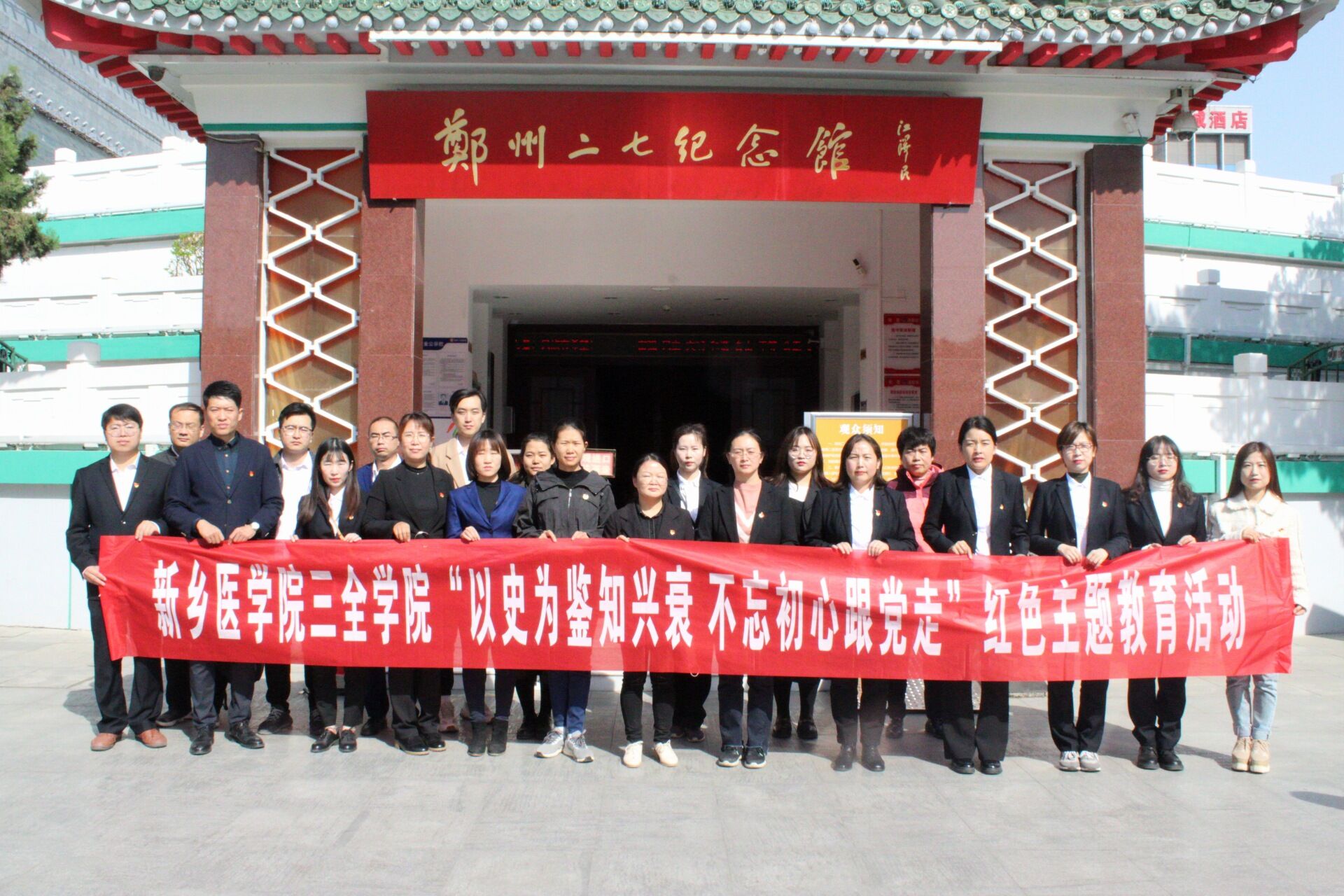 为扎实开展“以史为鉴知兴衰、不忘初心跟党走”红色基地教育,进一步加强党员理想信念教育、强化党性意识,深入学习贯彻落实习近平总书记关于党史、新中国史、改革开放史、社会主义发展史学习的重要讲话和指示精神,持续深化爱国主义教育。10月23日,新乡医学院三全学院德馨书院党总支、仁智书院党总支、护理学院党总支、健康管理学院党总支一同赴郑州二七纪念馆参观学习。