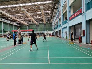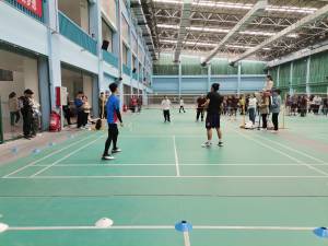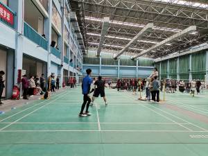 十月二十八日中午十二点,体育馆内继续举行男子羽毛球比赛,此次比赛为德馨书院对战智行书院。