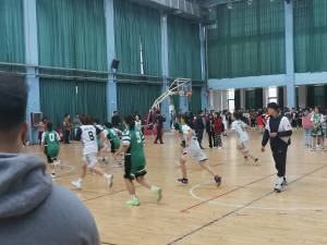随着裁判员的一声哨响,中场休息时间到,队员们下场休息,球队负责人迅速送上水杯,为队员们补充水分,球员们也在一边重新安排人员上场,为下半场的进攻制定计划。下半场刚开始,我们德馨书院的球员便主动出击,又是一次连续传球,中距离出手,球进啦,场上的气氛瞬间被抬高,比赛进入了白热化阶段。在比赛进行一段时间后,崇德书院的队员可能是因为体力耗尽,防守能力下降,我方队员也是趁此机会连续进球,将分差拉大。