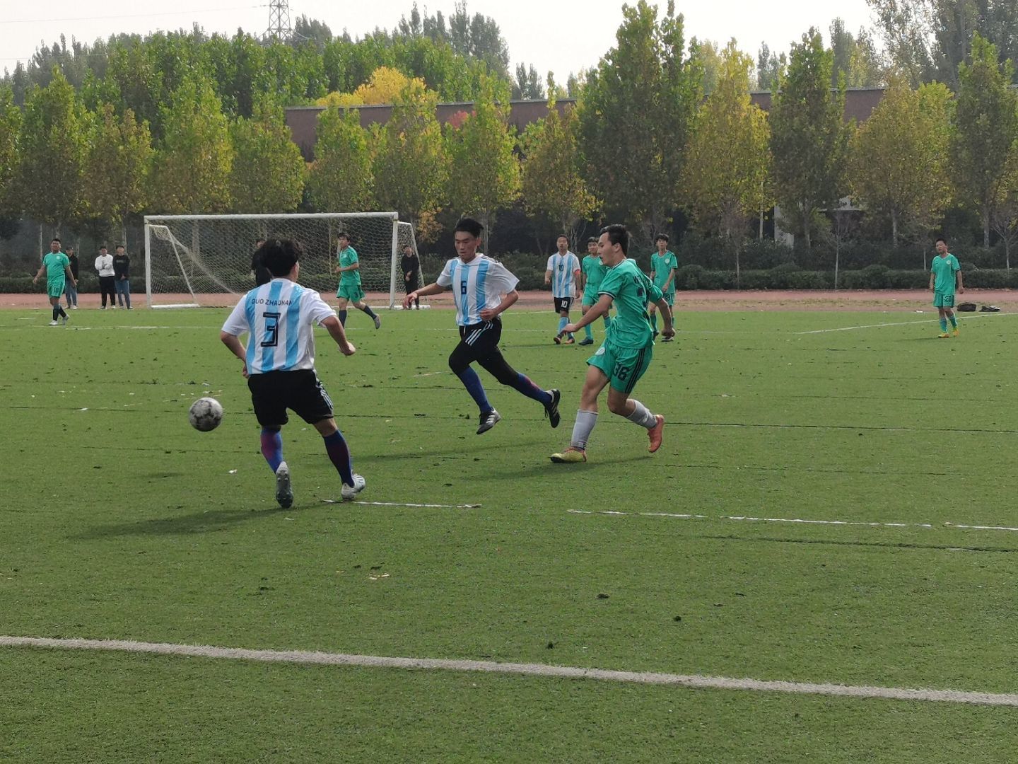 天气炎热,战火重燃,硝烟弥漫,2020年11月1日中午11:00,为了丰富校园生活,活跃校园气氛,我校在风雨操场举行了足球赛。本次运动会既给当代大学生提供展示自我能力的平台,又能展现出不同于以往大学生的团队精神。该活动积极响应“发展学生德智体美劳”的号召,增强学生体质,培养青少年拼搏进取的团队精神。今天在绿茵场上,智行书院和德馨书院两大书院的球队在赛场上奋力奔跑。