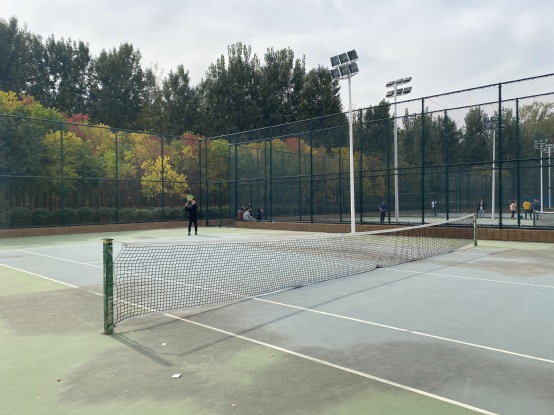 11月3日,中午12点,第四轮男子网球比赛在体育场内即将开始。交战双方是德馨书院的男子网球队和精诚书院男子网球队。