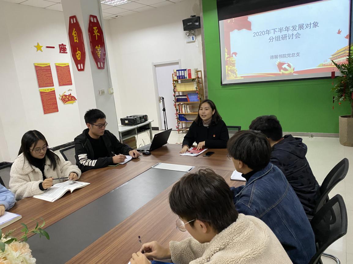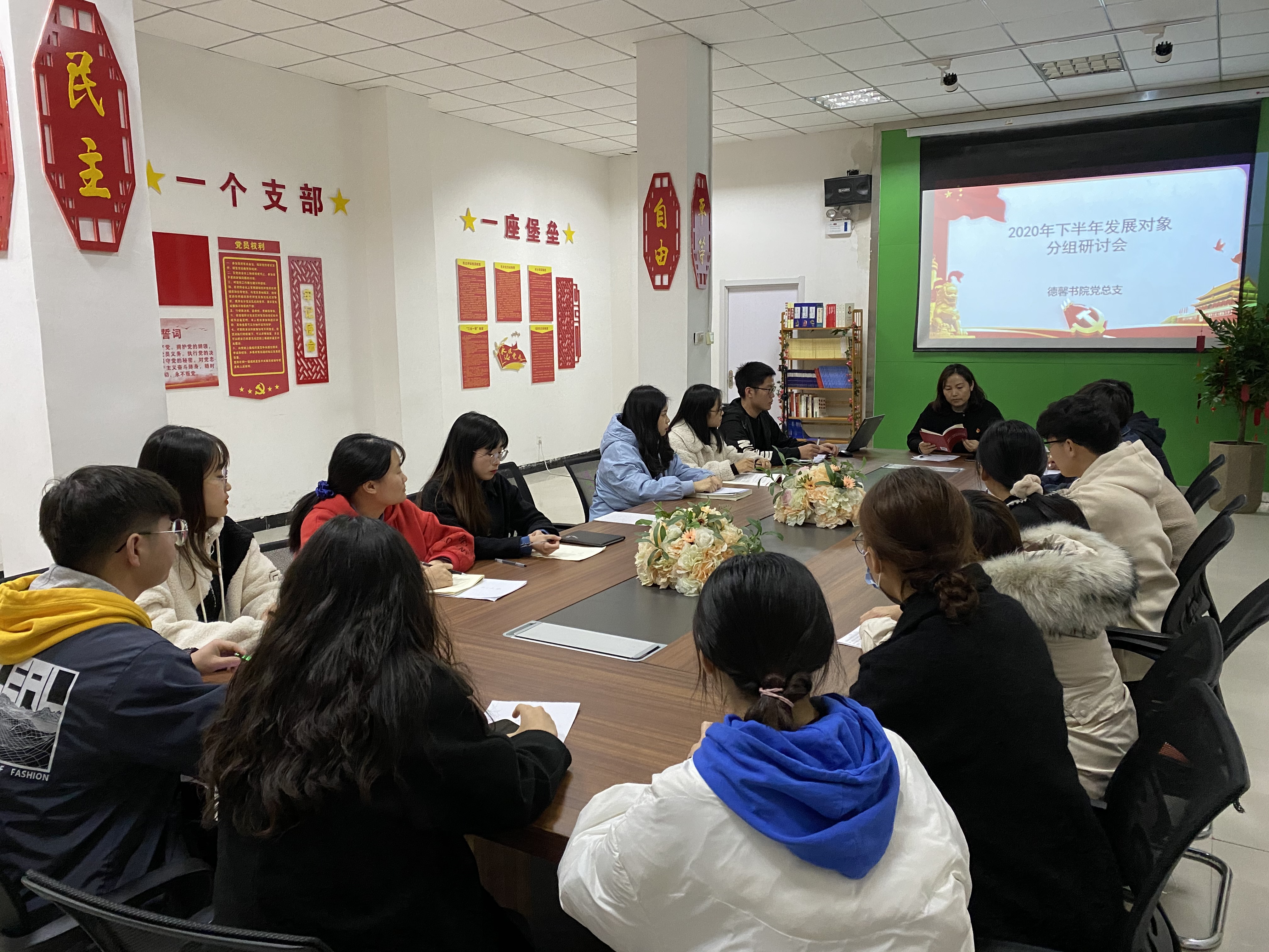 为不断壮大党员队伍,改善党员队伍结构,提高党员队伍素质,保持党员队伍生机活力,担负起新的历史使命。11月23日德馨书院党员活动室举行的2020年下半年发展党员研讨会圆满结束。