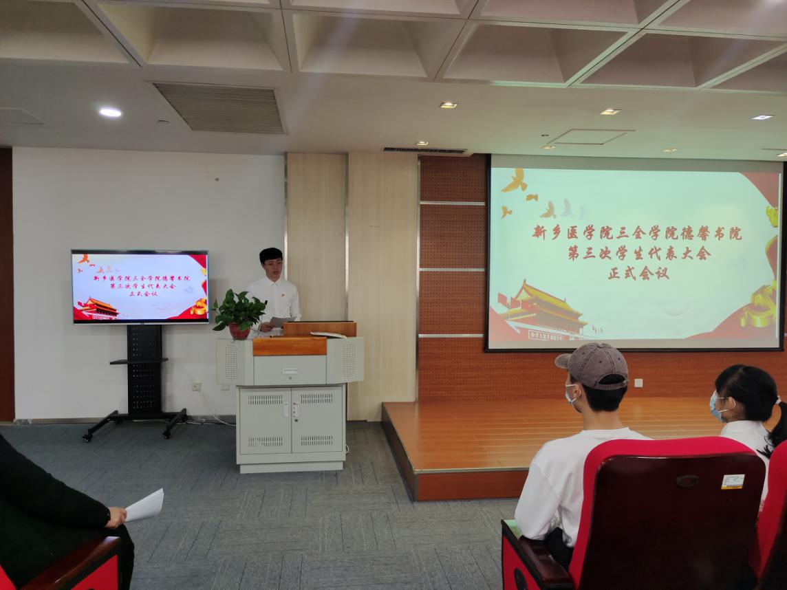 12月10日,新乡医学院三全学院德馨书院第三次学生代表大会在图书馆五楼学术报告厅召开。参与本届学代会的有德馨书院80名学生代表,会议应邀出席的有德馨书院党总支副书记平丹丹、德馨书院团总支书记兼院务主任高明。