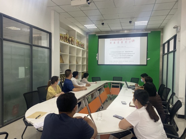 为积极响应党中央号召,让广大师生深入学习习近平总书记在回信中的重要思想。7月17日德馨书院党总支书记金靖芝同志带领全体教职工党员在德馨书院会议室开展七月份政治理论学习活动。