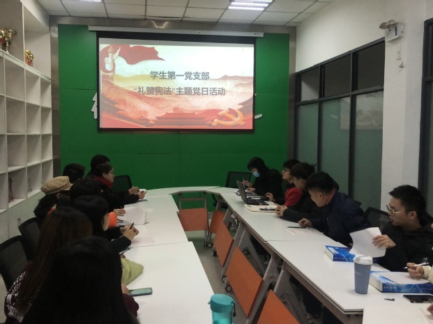 为深入贯彻落实宣传党的十九大精神,增强全民法制观念,推动全社会树立宪法意识,在全社会形成学习宪法、尊崇宪法的良好氛围,德馨书院第一党支部在十二月二日于德馨书院会议室开展了礼赞宪法主题党日活动。本次会议由支部书记李丹萌主持召开,第一党支部全体在校党员参加。