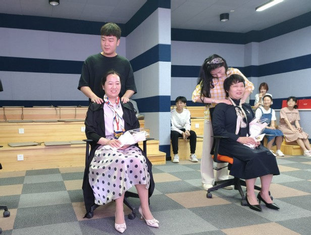 活动现场,2019级护理学专业董美蓉同学说道:“照片墙上一个个美丽的妈妈,那存有些许沧桑的亮丽眼眸,那粉底无法掩盖的皱纹,那些染发剂无法改变的白发,她们用青春给予我们生命的体验,我爱妈妈,感恩她的养育之恩。”