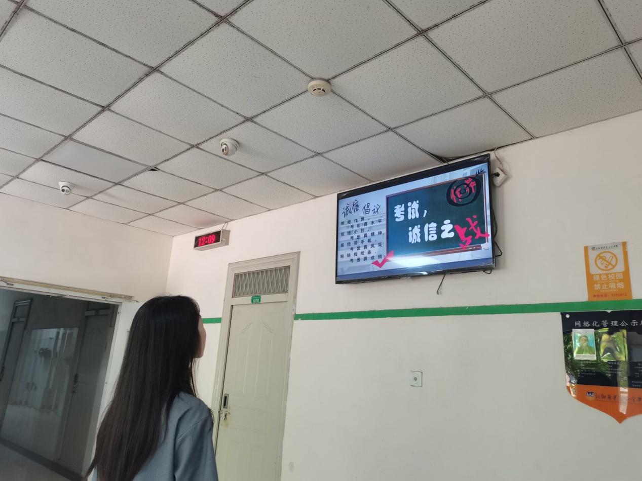 “五个一”活动即召开一次“诚信考试从我做起”主题班会,辅导员组织应考学生集中观看一次诚信教育宣传片,开展一次诚信考试宣誓活动,签订一份诚信考试承诺书,开展一次考生“无声入场”模拟演练。“五个一”工作的开展,使得考生进一步提高对诚信考试的认识,自觉培养诚信考试的优良品质。活动前书院积极利用广告机、宣传栏、“两微一端”等途径广泛宣传诚信的意义,组织考生签订诚信考试承诺书,承诺营造一个良好的考试氛围,强化考生对诚信考试重要性的认识。同时,结合诚信教育主题班会深入讲解考试注意事项及强调诚信考试的意义。会上,书院组织全体考生观看《刑法修正案(九)》小视频,让考生充分知晓作弊后的严重后果,2018级专科护理5班常欣祥带领全体考生进行诚信宣誓仪式,大家右手举拳,庄严宣誓:“我宣誓:自觉遵守考试纪律,公平参与考试竞争。珍惜名誉,诚信做人,诚实应考。