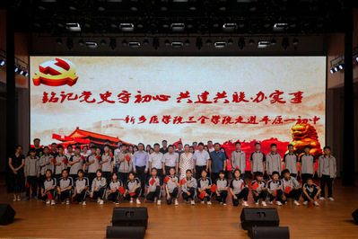 党史学习教育开展以来,德馨书院党总支坚持以习近平新时代中国特色社会主义思想为统领,紧扣党史学习教育主题,立足自身专业优势,结合学校服务周边、协同发展战略定位,5月26日,基础医学院党总支联合德馨书院党总支,开展“铭记党史守初心,共建共联办实事——新乡医学院三全学院走进平原示范区第一初级中学”为主题的结对共建活动。平原示范区第一初级中学校长李帅,副校长祝鹤、胡新中,我校党委副书记吕莎、基础医学院党总支副书记王林翮、副院长苗莹莹及教师党员代表参加了本次主题活动。