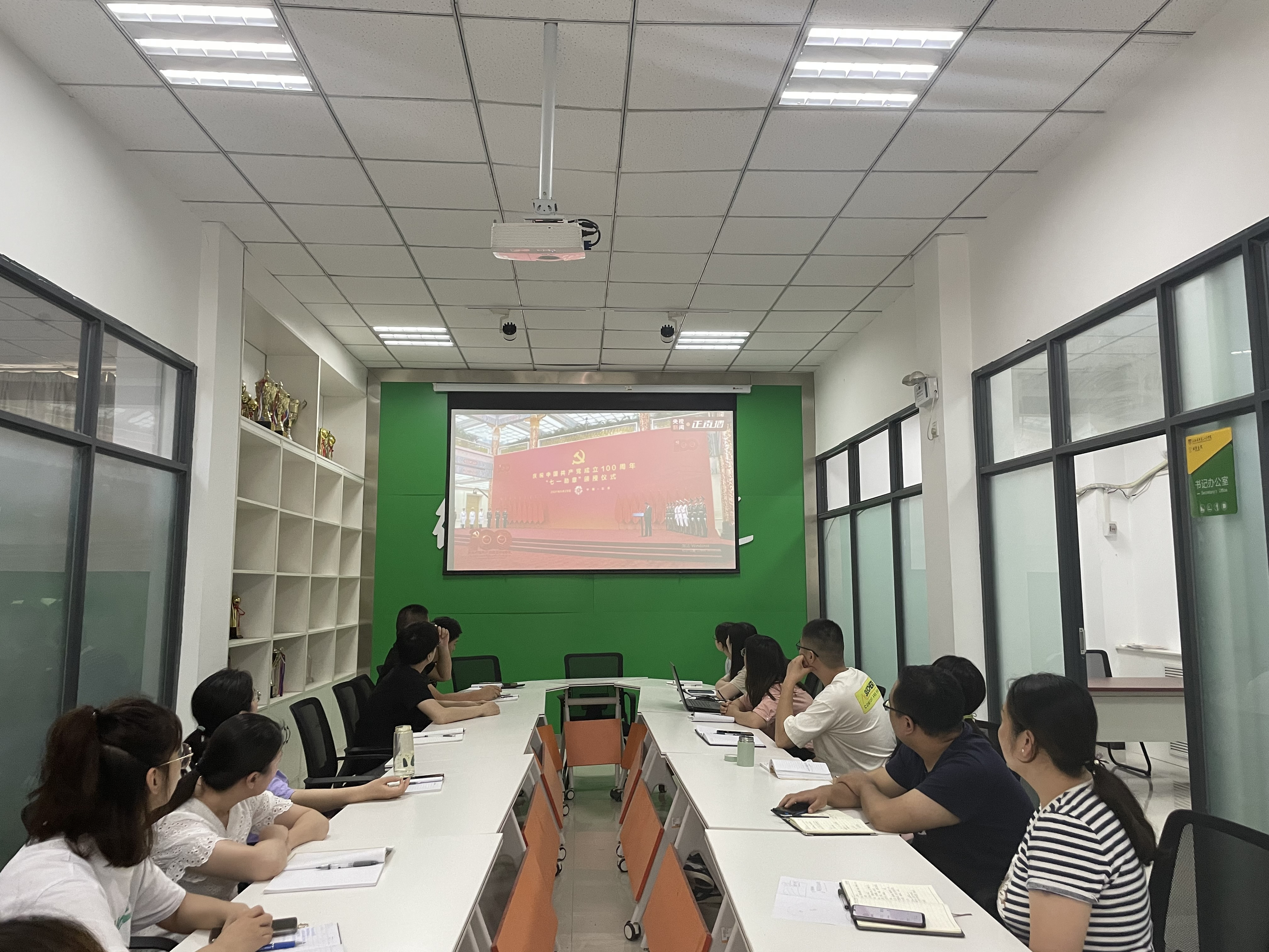6月29日上午,庆祝中国共产党成立100周年“七一勋章”颁授仪式在北京人民大会堂隆重举行,德馨书院党总支全体教职工在书院会议室集中收听收看直播。