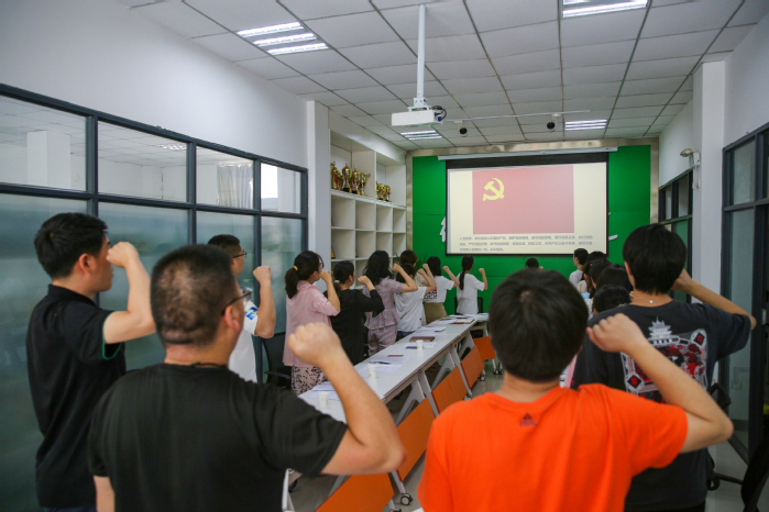重温誓词守初心。由党支部书记李丹萌同志领誓,组织全体党员、发展对象和入党积极分子面向党旗集体宣誓。“我志愿加入中国共产党......”铮铮誓言,字字千钧,意味着每位党员都要担负起一生的光荣使命。