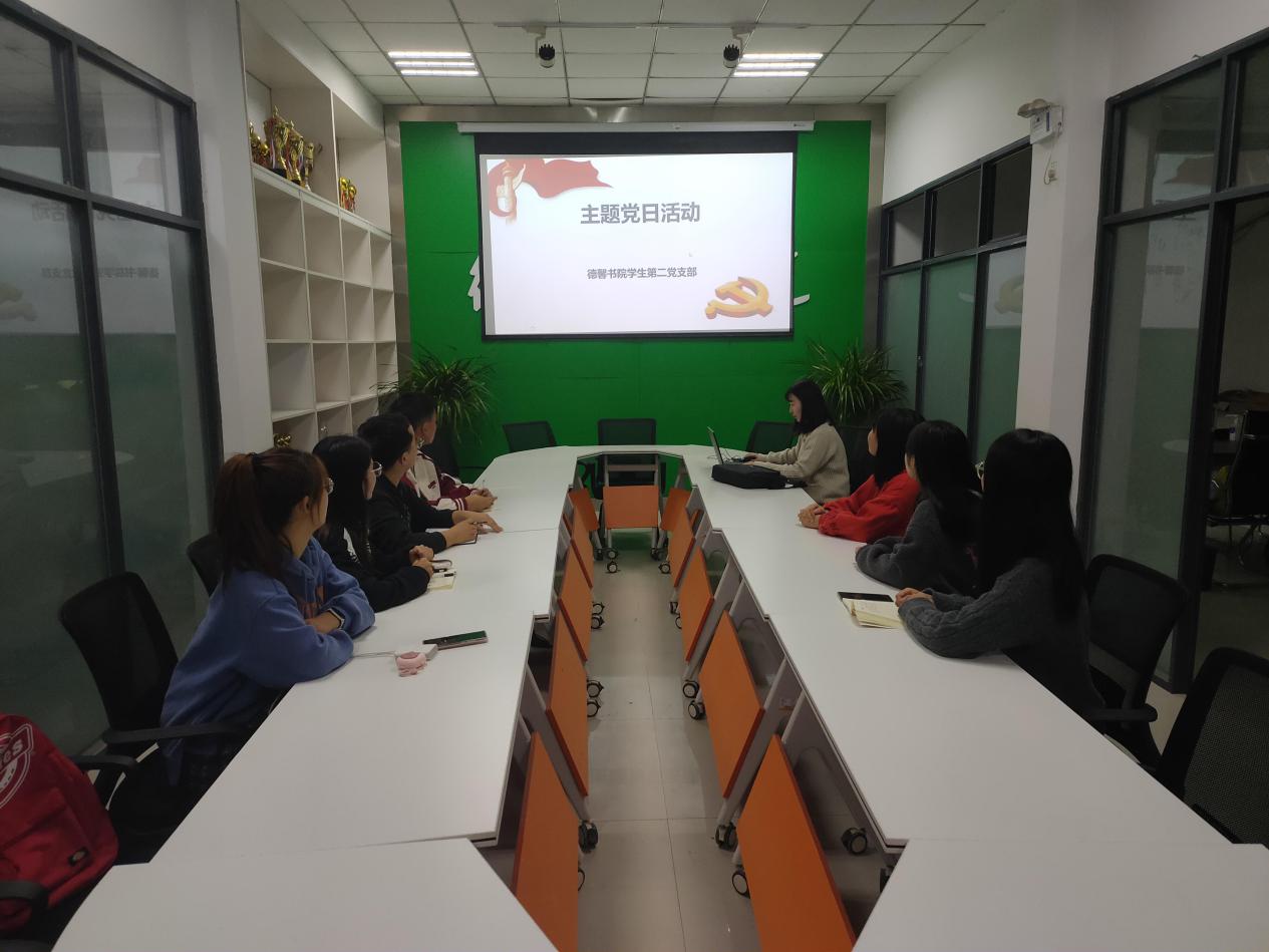 为深入贯彻落实习近平新时代中国特色社会主义思想和党的十九大精神,10月27日,德馨书院学生第二党支部在德馨书院会议室召开“穿越历史,振兴中华”主题党日活动。会议由侯吉昀书记召开,学生第二党支部全体党员参加。