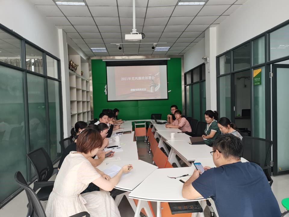 2021年9月1日,德馨书院在会议室召开2021年下半年党风廉政建设工作部署会,会议由德馨书院党总支副书记平丹丹主持,德馨书院全体教职工参加。