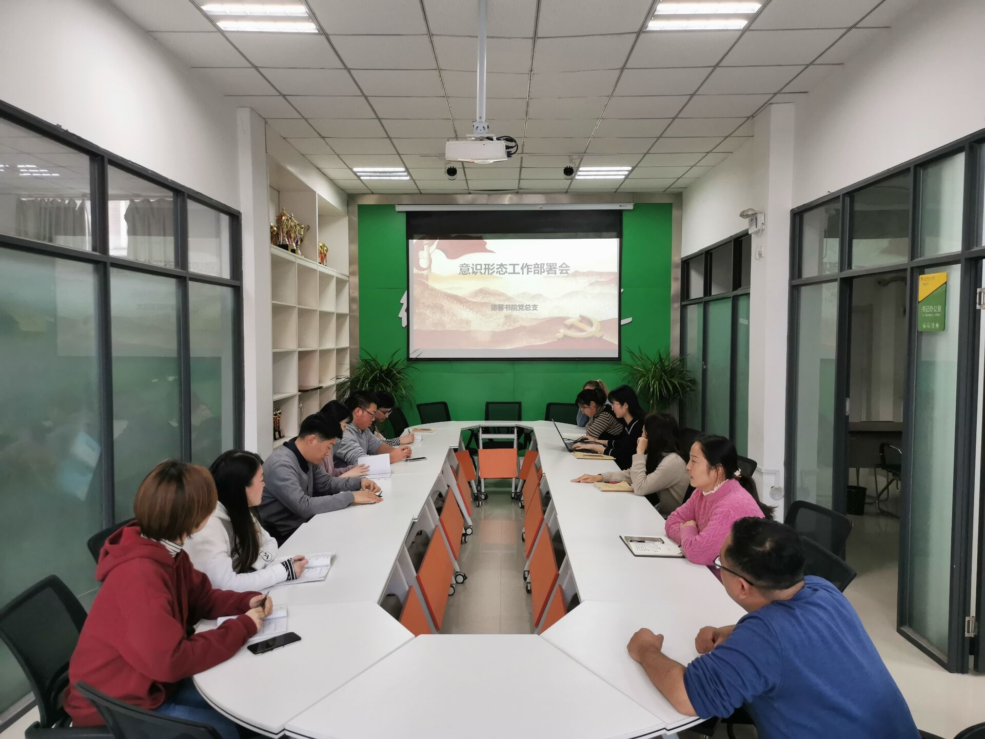 9月24日,德馨书院党总支在书院会议室召开了2021年下半年意识形态工作部署会,这次会议的主要任务是传达上级有关文件精神,总结上半年意识形态工作,安排部署下半年意识形态工作。