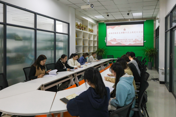 党委副书记吕莎参加了德馨书院学生第一党支部主题党日活动,学生党支部书记李丹萌就党支部的基本情况和支部工作开展情况向与会党员做了汇报,带领支部党员全面落实党组织会议“第一议题”制度,学习《中国共产党第十九届中央委员会第六次全体会议公报》,观看《继续奋斗,走好新时代赶考路》微视频短片,在与会党员热烈的讨论下,回望过往的奋斗路,眺望前方的奋进路。