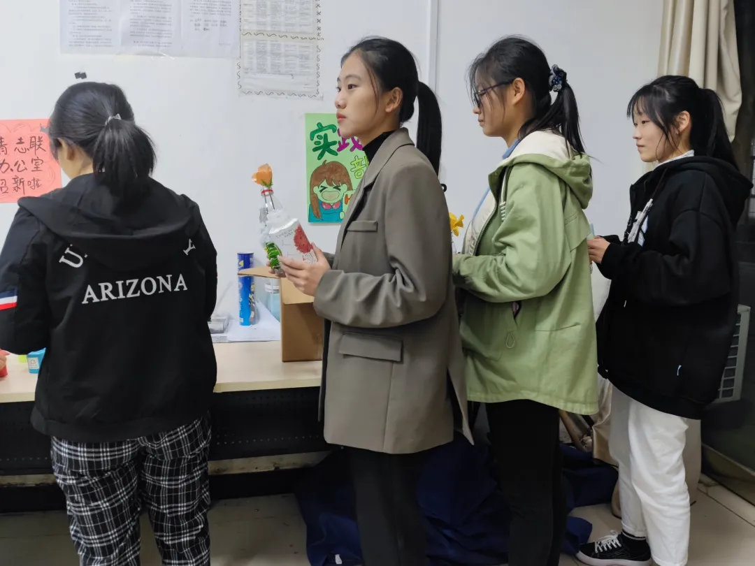 本次活动分为两个部分。第一环节由工作人员向志愿者们征集干净整洁的空瓶子,并DIY制作成精美的瓶子。第二环节在风雨操场进行“传递瓶子”和“投掷瓶子”活动。