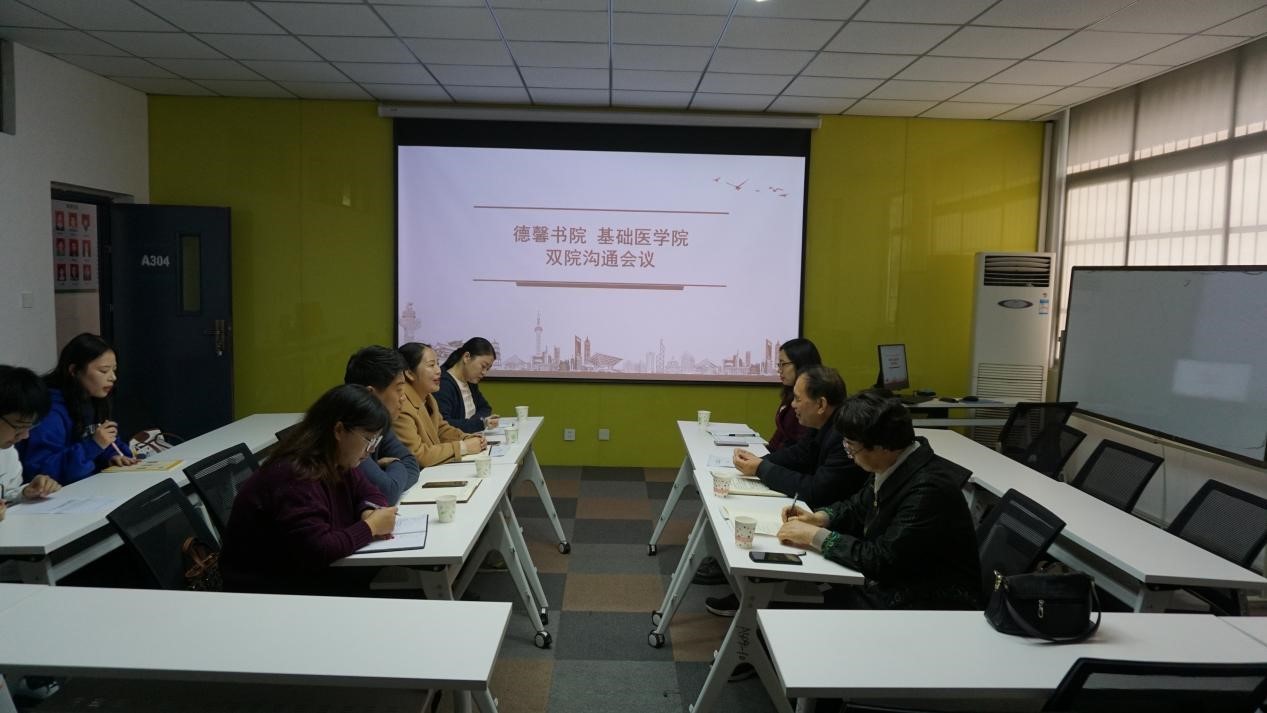 坚持“双院”优势互补的发展格局,德馨书院本学期大力推进双院沟通机制,强化育人渠道,先后与基础医学院、护理学院、智能医学工程学院、健康管理学院等院系进行密切沟通,结合学生学业引领和专业素养培养等方面,分析研判,推动学生学业正向发展,形成“双院”联动的强大合力。