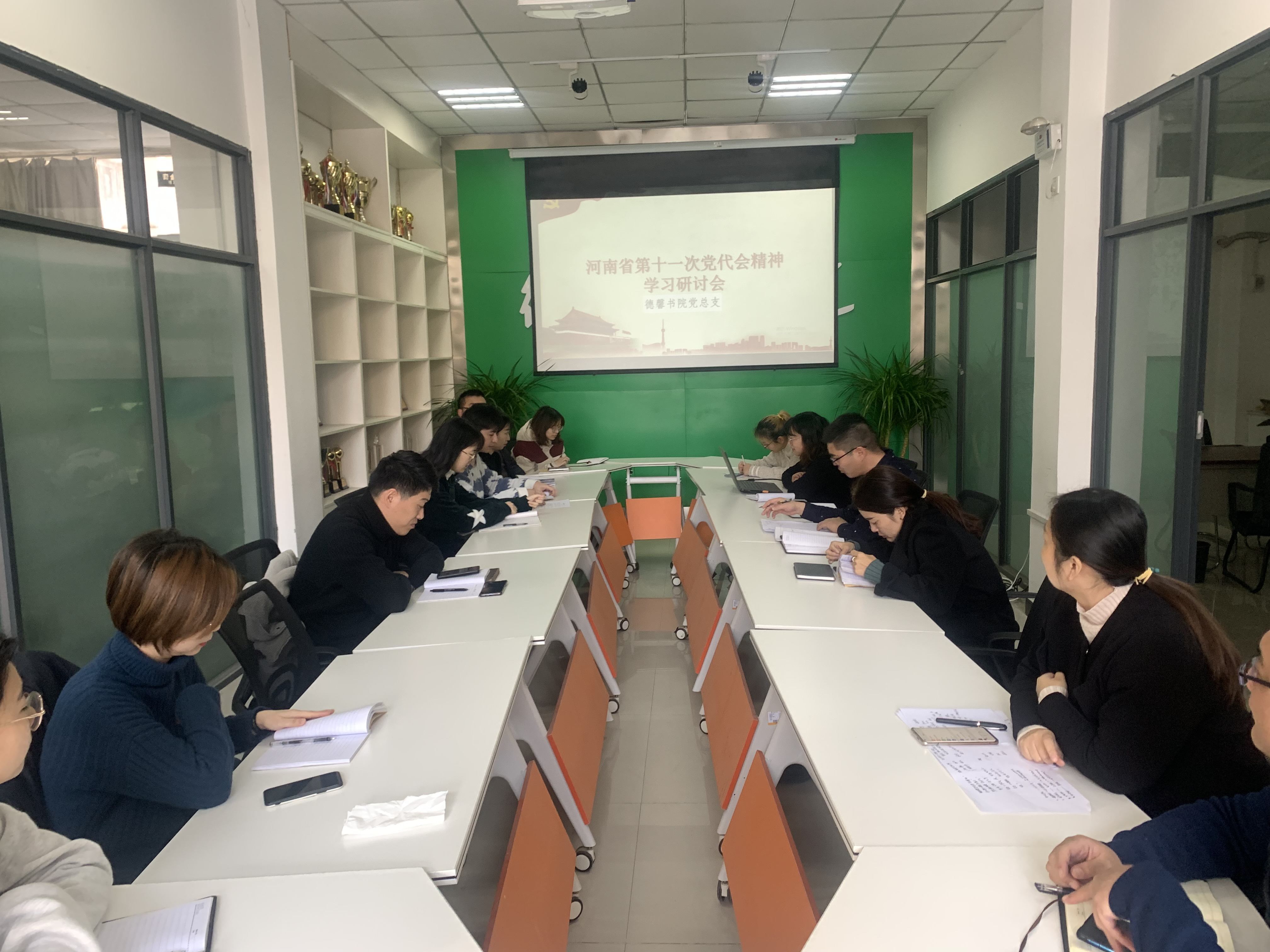 随着全面建成小康社会历史性目标的顺利实现,我国开启了全面建设社会主义现代化强国的新征程。为把增进德馨书院学生福祉摆在更加重要的位置,德馨书院党总支全体教师于11月1日在德馨书院会议室召开学习贯彻河南省第十一次党代会会议精神。