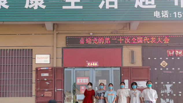 首先,团队利用超市的广播对二十大的召开进行简单地宣传,随后慷慨激昂地进行了“青春献礼二十大,强国有我新征程”的实践活动宣讲。其次,团队又在广播里播放了在网络上寻找的关于二十大宣传的语音、视频内容。最后,团队成员对住所和实践场所进行了打扫整理。