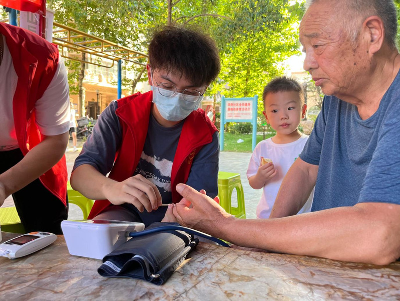 随着生活水平的提高,身体健康问题也越来越受到人们的关注,但目前,我国居民健康水平仍比较低。为了向居民们宣传一些医学基础常识,并尽力为人们解决一些问题,德馨书院爱心医疗队于6月25日赴新乡市红旗区学府社区为居民们进行测量血压与血糖和一些简单的体检。