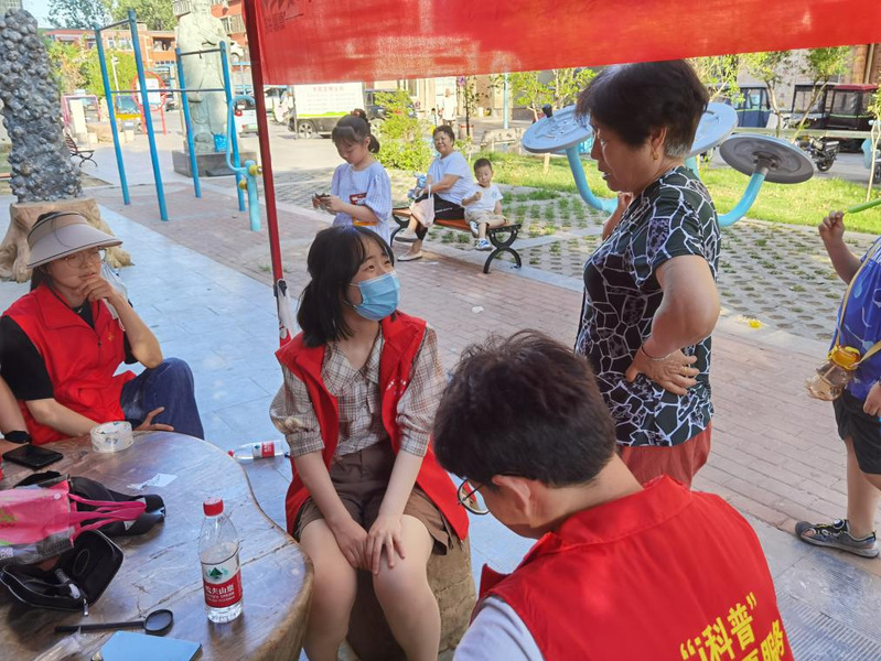 为响应国家“健康中国”的号召,让更多的人了解医疗常识,6月28日,我们与居民进行了积极的交流并为他们解决疑惑。在现代社会,尽管国家开始逐步重视医学养生,可百姓对此并没有一个很好的熟悉度,所以我们通过发放前期准备好的宣传单来介绍一些简单的医学知识和有关夏季易患病的防治方法和注意事项。这一宣传活动得到了大家的热烈反响,很多居民都会认真阅读传单并向我们提出各种相关的疑问,在老师的帮助和队员的努力下,他们得到了满意的解答。