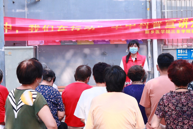 为了全面贯彻落实习近平总书记提出的“健康中国”理念,7月2日,新乡医学院三全学院德馨书院卒中科普小队负责人张馨月带着团队成员来到了新乡市红旗区双石桥小区,为双石桥辖区居民进行脑卒中科普宣传。本次宣讲有幸邀请到社区医生张景尧予以专业指导。