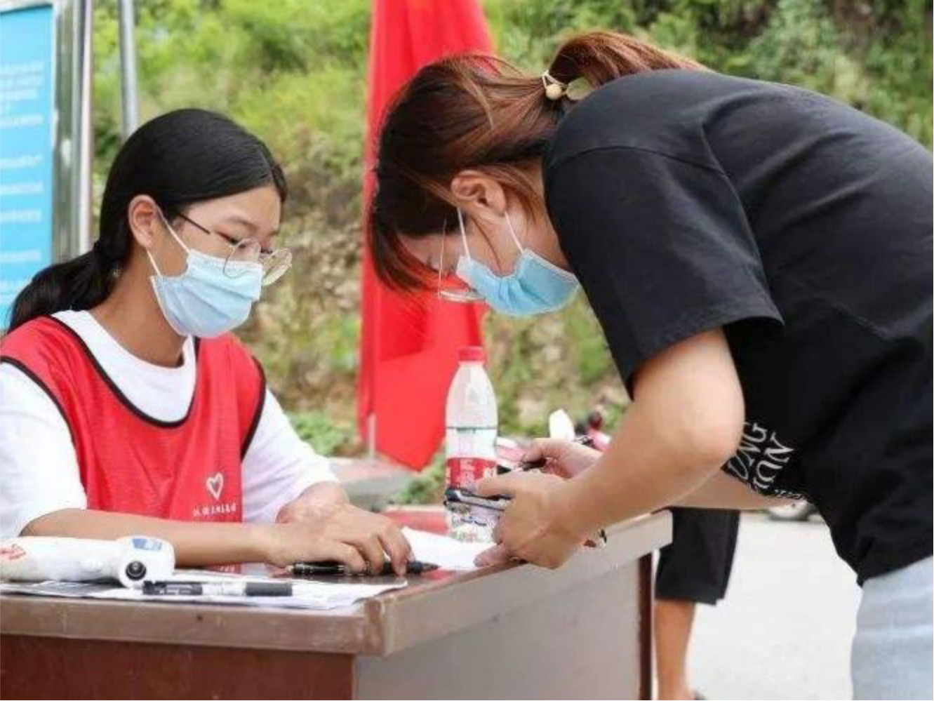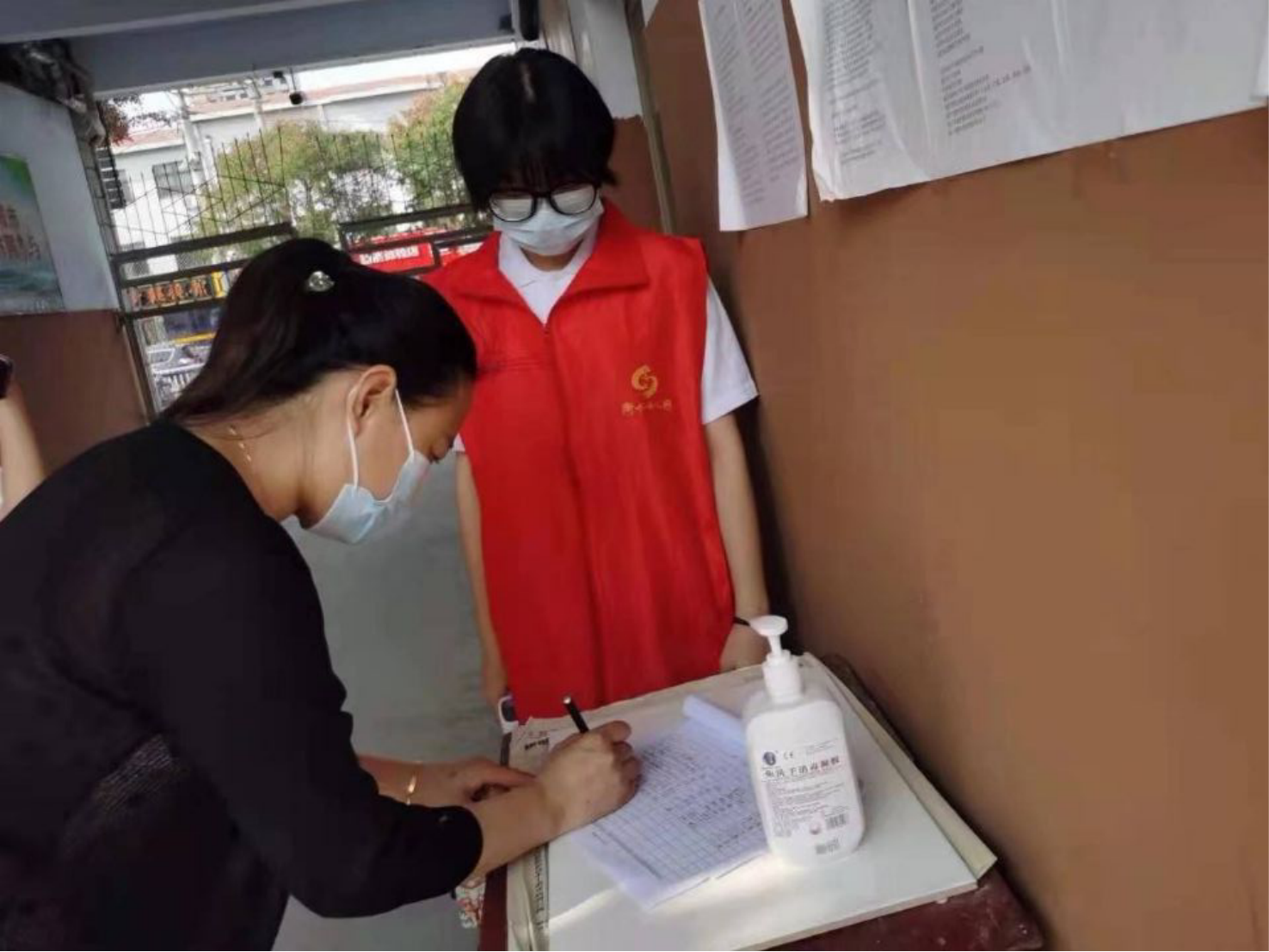 活动开始,团队成员打印了许多写着流行性疾病预防方法、急救方法、医疗常识等健康知识卡片,并分发给社区居民;团队运用所学知识帮助群众了解掌握卡片知识,同时,团队结合暑期高温现状向广大群众宣传了关于中暑的相关知识以及急救措施,告知居民们中暑时一定要迅速离开高温环境至清凉处休息,喝一些盐水,必要时及时就医。随后,团队成员进行了防疫知识的宣传,提醒出入的人员要戴口罩,量体温,出示健康码和行程码,做好登记。