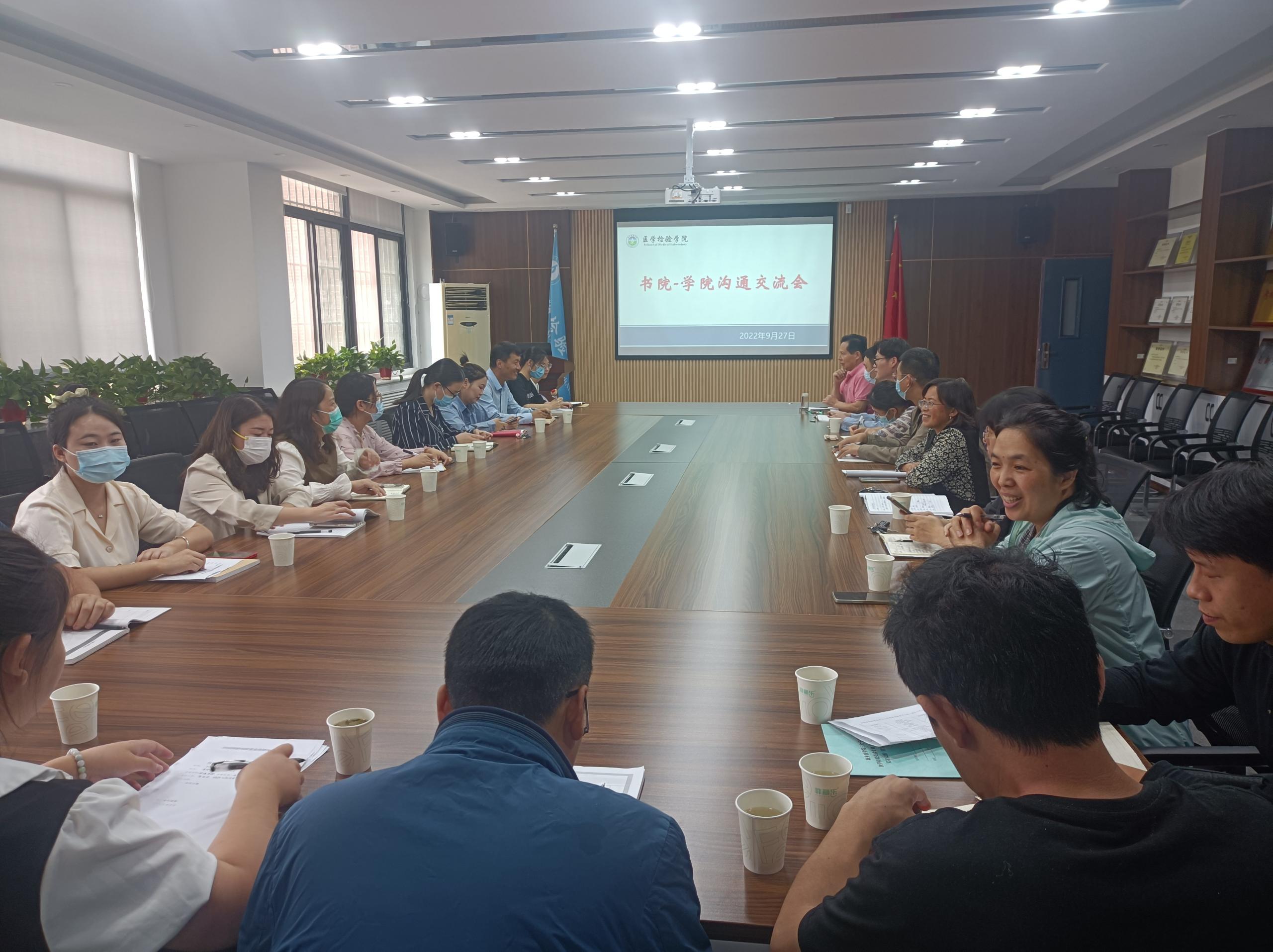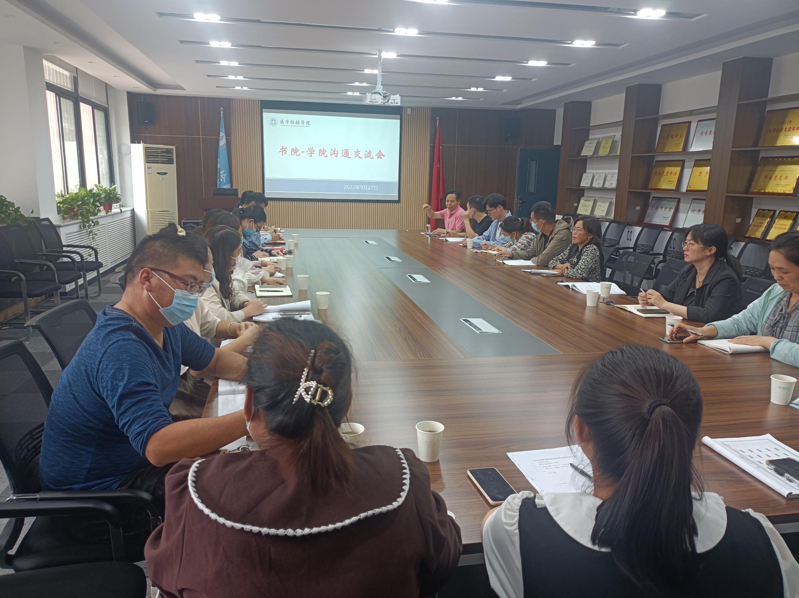 本次会议,书院和院系的各位老师,主要沟通了三个方面的内容:1、新生入学教育问题2、在校生学业指导问题。3、毕业生就业工作提前谋划问题。针对这几个方面,提出解决方案:1、关于新生入学教育问题,邀请我们的专家老师和优秀毕业生与新生进行交流,让学生更明确学习目标,激发学习热情,对未来有更清晰的认识和明确的规划。2、关于在校生学业指导问题,先对学生进行学业适应指导,加强学生专业认知,提升就学积极性,密切关注学生动态,挖掘学生潜能。加强学业规划指导与学业创新指导,制定个性化的学业指导与职业规划。3、关于就业工作提前谋划问题,采取早谋划、早准备、早行动,早落实的方针。尽早调研学生的就业意向,深入开展社会需求调查与积极开展毕业生就业状况跟踪调查,通过多渠道开拓省内外就业市场并加强后期跟踪服务。
