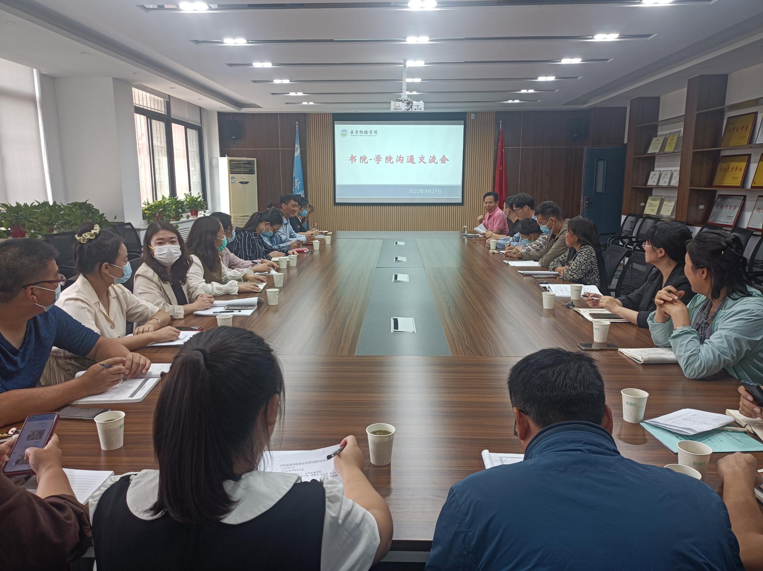 本次会议主要沟通交流新生入学教育问题,在校生学业指导问题和毕业生就业工作提前谋划问题进行说明。通过这次会议的召开,德馨书院与医学检验学院更好地了解到学生的需求,会议上以解决学生的实际问题为中心进行的交流,为学生的日后发展创造出更大的舞台,同时建立长效的双院协调沟通机制,更加明确了双院制沟通机制的范畴,进一步完善了沟通协调机制,为今后工作的顺利开展提供了极大的便利。