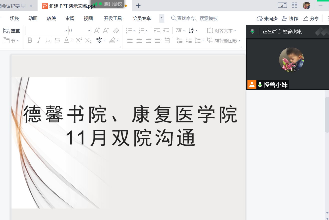 11月21日,德馨书院和康复医学院召开11月份双院沟通会议,康复医学院郭夕语老师和德馨书院辅导员张晗展开了本次交流会。