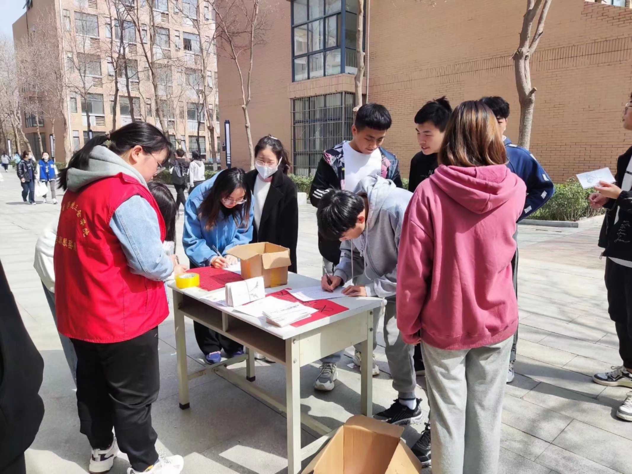 本次活动志愿者们首先在相关负责人的指引下,用许愿卡传递自己对女性朋友们的关爱,有志愿者写道:愿天下所有的女生节日快乐,永远开心。也有志愿者表示:给你一缕春风,愿你拥有美丽前程,祝你节日开心。志愿者们用朴实无华的语言表达了对女性最美好的节日祝福。随后,在“幸运色心意随送”活动中,志愿者们在校园内寻找符合自己幸运色的“女神”,并向她赠送手工贺卡表示对她们的真挚祝愿。除此之外,志愿者们也没有忘记自己的妈妈也是女神中的一员,在“心随手动”活动中,志愿者们特此为自己的妈妈亲自手工制作了一份专属于妈妈们的档案以表达对妈妈这位美丽的“女神”最美好的祝福。