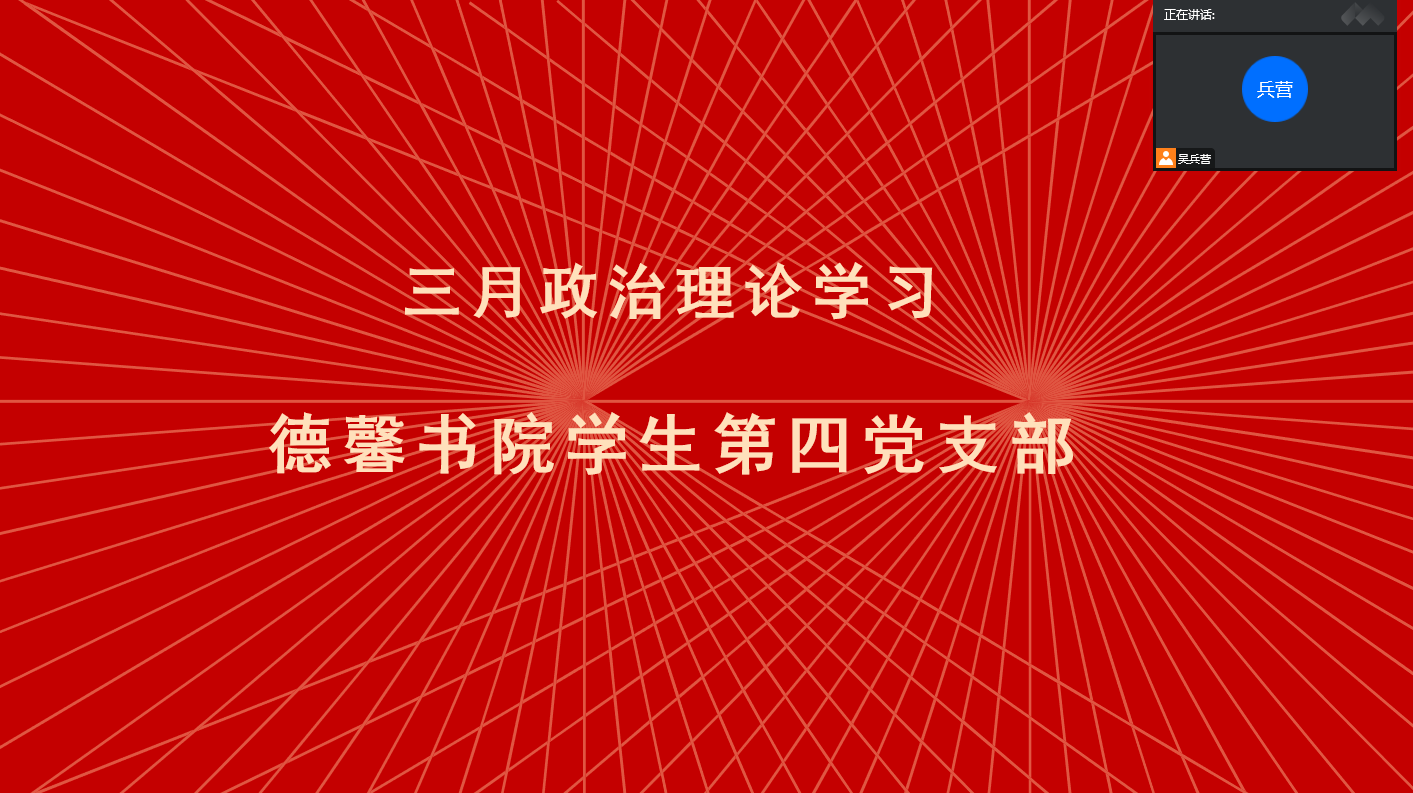 3月22日,德馨书院学生第四党支部在德馨书院会议室开展三月份政治理论学习。参加会议的有支部书记吴兵营、组织委员高明、宣传委员赵心煜同志。