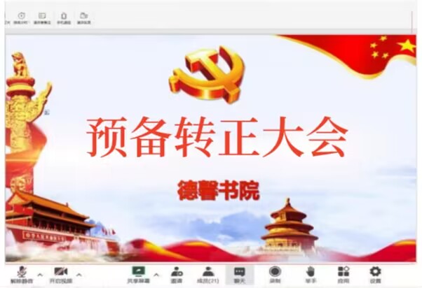2022年5月8日德馨书院学生第一党支部通过腾讯课堂召开了2022年上半年预备党员转正大会,大会由德馨书院学生第一党支部支部书记吴兵营主持,学生第一党支部所有党员同志参与。