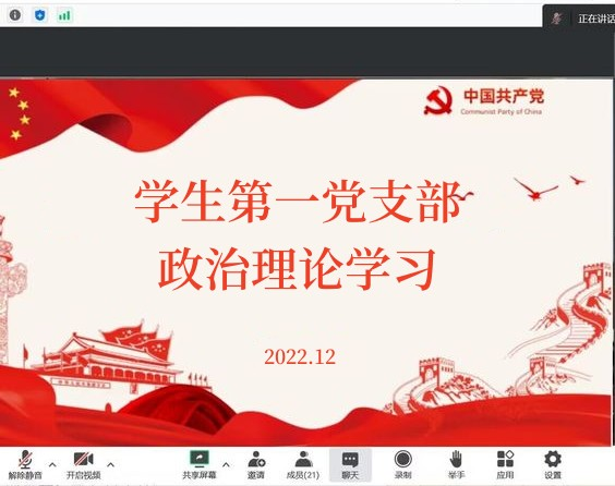 12月22日,德馨书院学生第一党支部通过腾讯会议开展十二月份政治理论学习。会议由党支部书记吴兵营主持,支部全体党员参加。