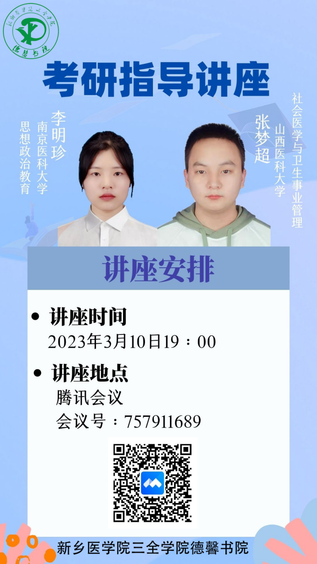 为确保我院考研学子顺利进行考研复试,成功上岸;2023.03.10德馨书院邀请2022届优秀上岸学子于腾讯会议为复试学生做考研复试指导,相信通过亲身经历的介绍,一定会使复试学生们学习更多的经验,让我们拭目以待吧!