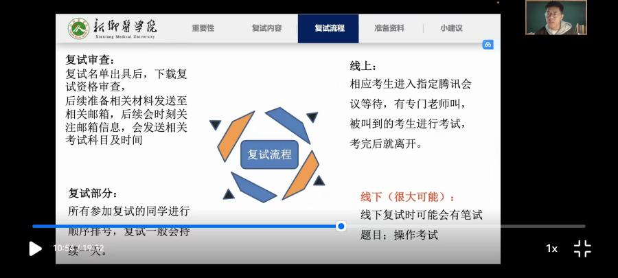 为持续做好毕业生考研复试指导工作,保证我院考研学子复试成功,3月14日考研复试指导邀请了新乡医学院2022级护理学专业研究生徐彭凯同学为复试学子做考研复试指导。