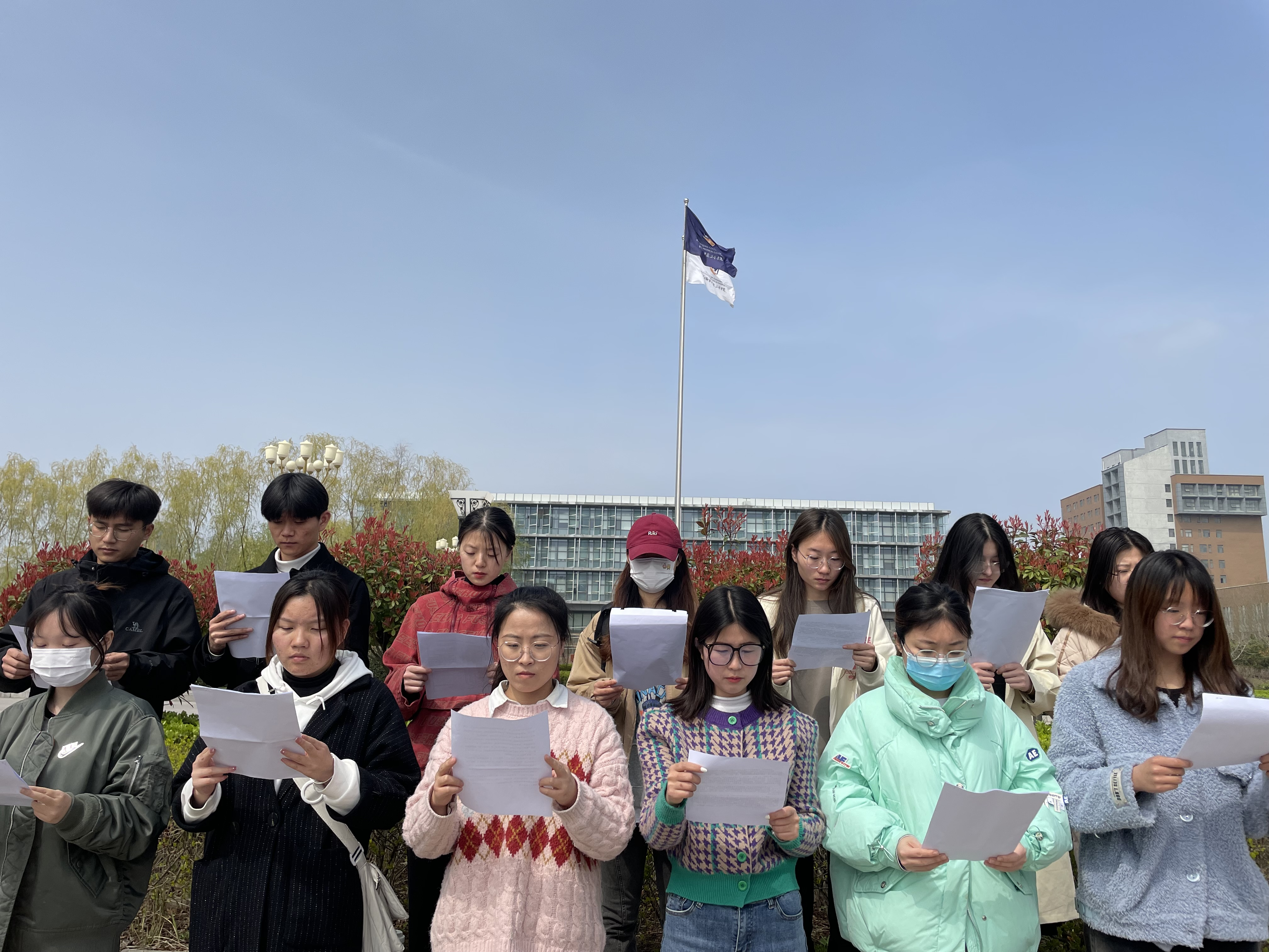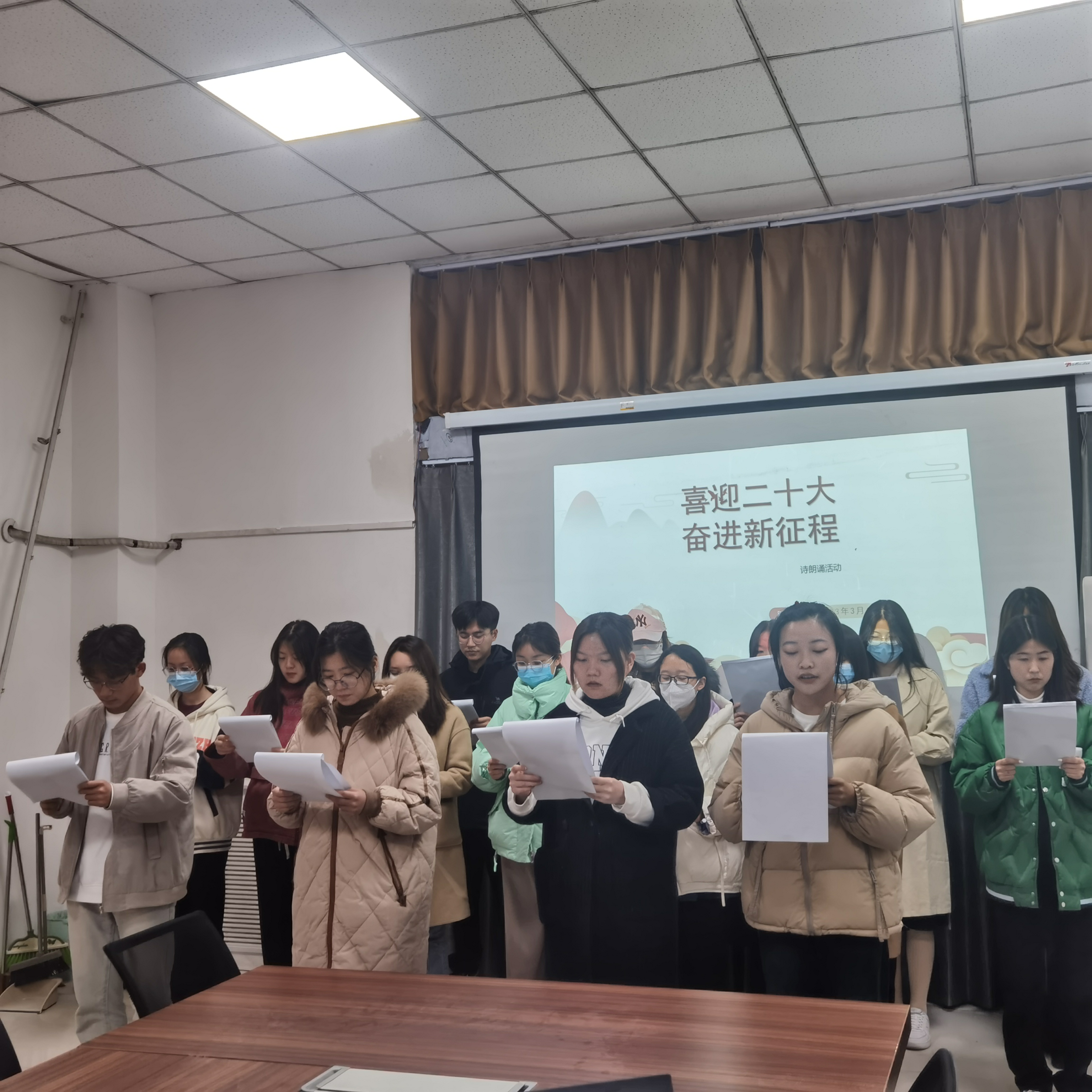为全面贯彻党的二十大精神,深入落实习近平总书记关于青年工作的重要思想,启发学生爱国热情,激励广大青年勇立时代潮头、绽放青春风采,3月18日德馨书院党总支开展了以“喜迎二十大,奋进新征程”为主题的诗朗诵活动,积极分子培训班全体成员参与此次活动。