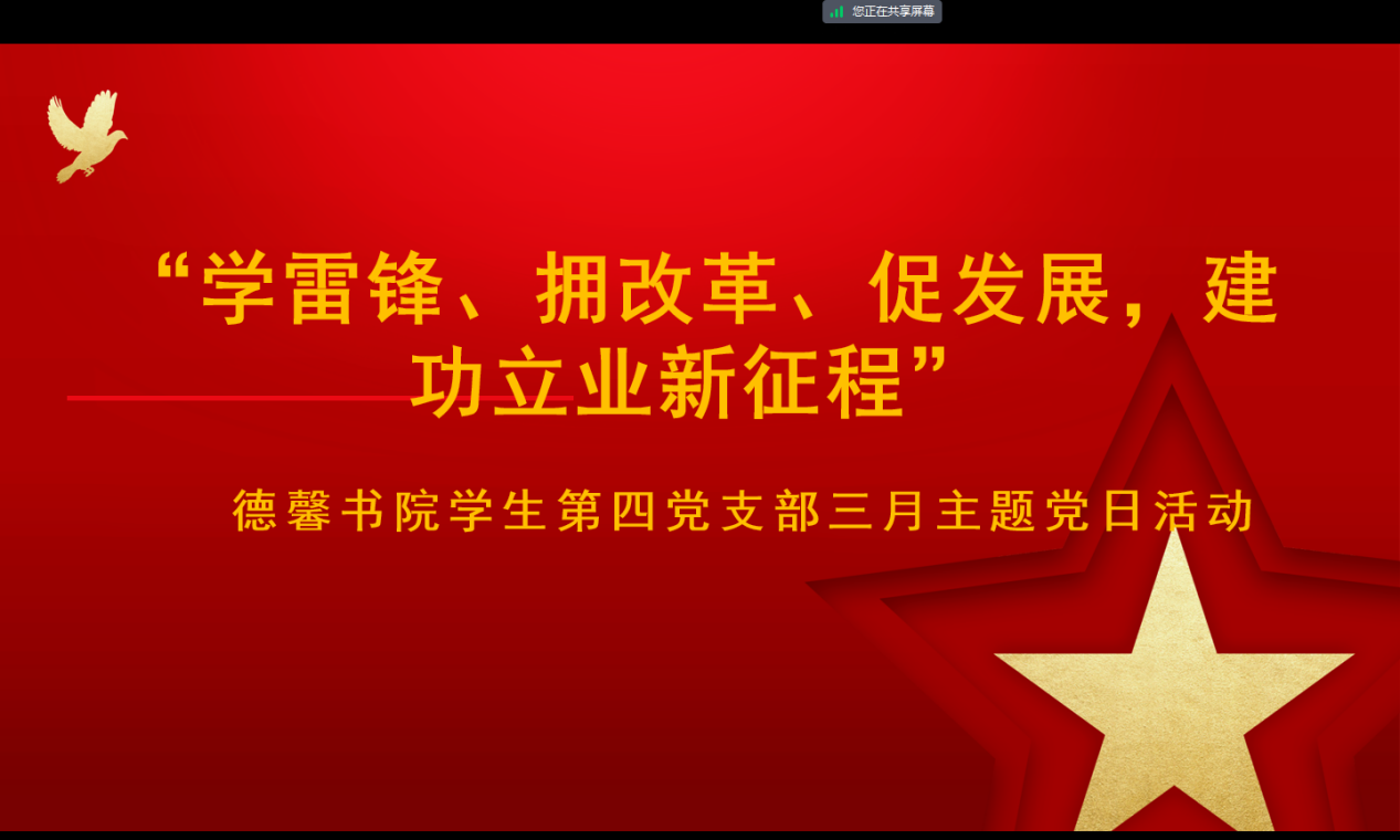 3月20日,德馨书院学生第四党支部召开“学雷锋、拥改革、促发展,建功立业新征程”主题党日活动。会议由支部书记马园园召开,学生第四党支部全体党员参加。