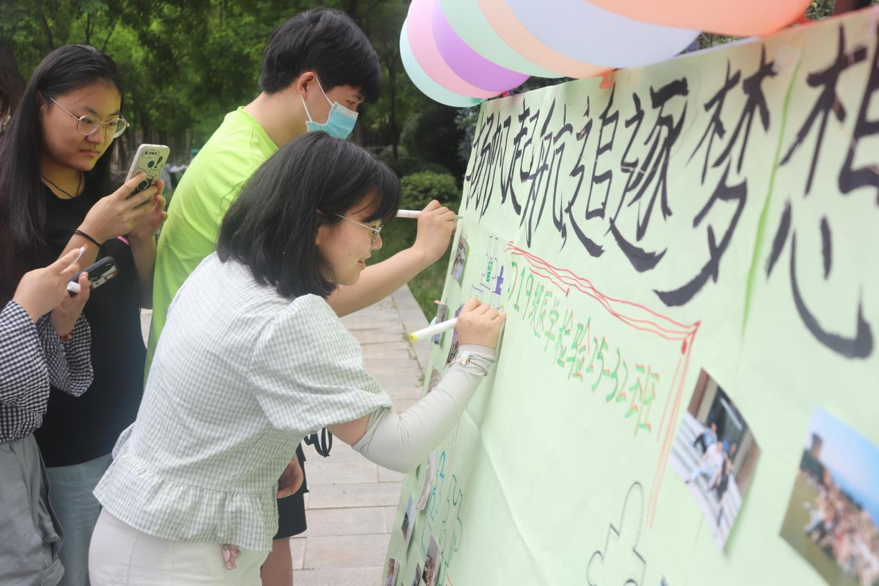 “手绘展板”书写惜别浓情。毕业生纷纷在贴满大家照片的展板上写下了大学生涯里自己心中的所感所想,以及对母校的美好祝愿,四年美好而艰辛的大学生活犹如漏斗中的沙石已悄然流进昨日,花落成实,学生们也在三全收获了累累硕果,感言将来无论在哪都会心系母校,关注母校发展。