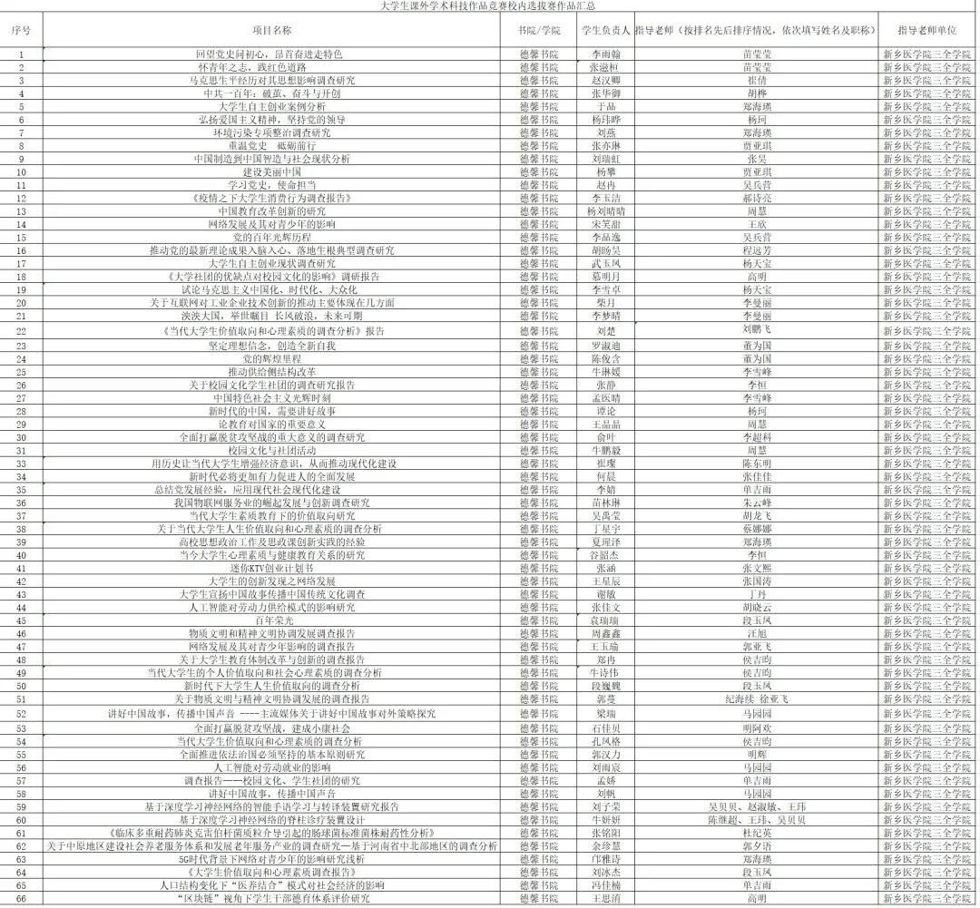 德馨书院团总支2021年3月开展新乡医学院三全学院挑战杯初赛,经过前期宣传、动员,德馨书院挑战杯共申请项目有66项,参与人数300余人,现将所有参赛项目进行公开展示。对参赛项目有疑问的同学可以电话、邮件或书面形式提出。